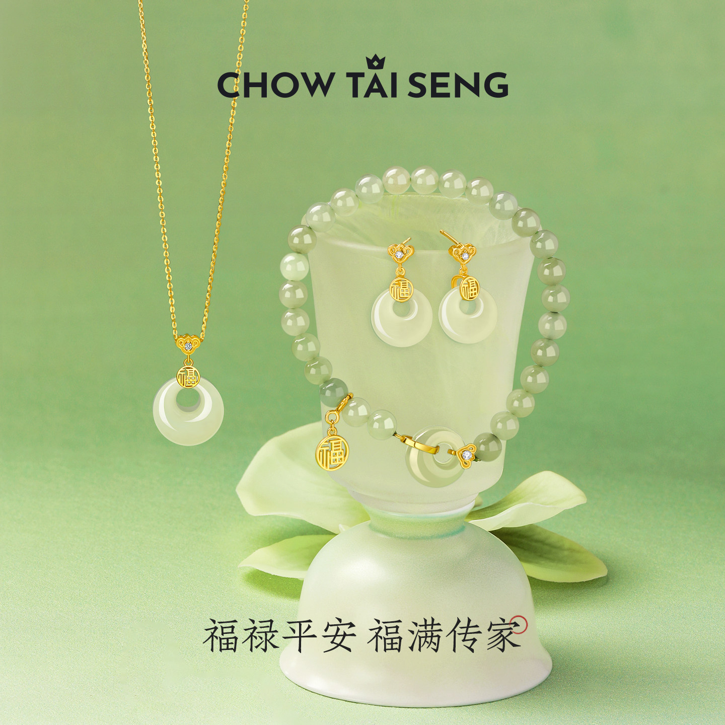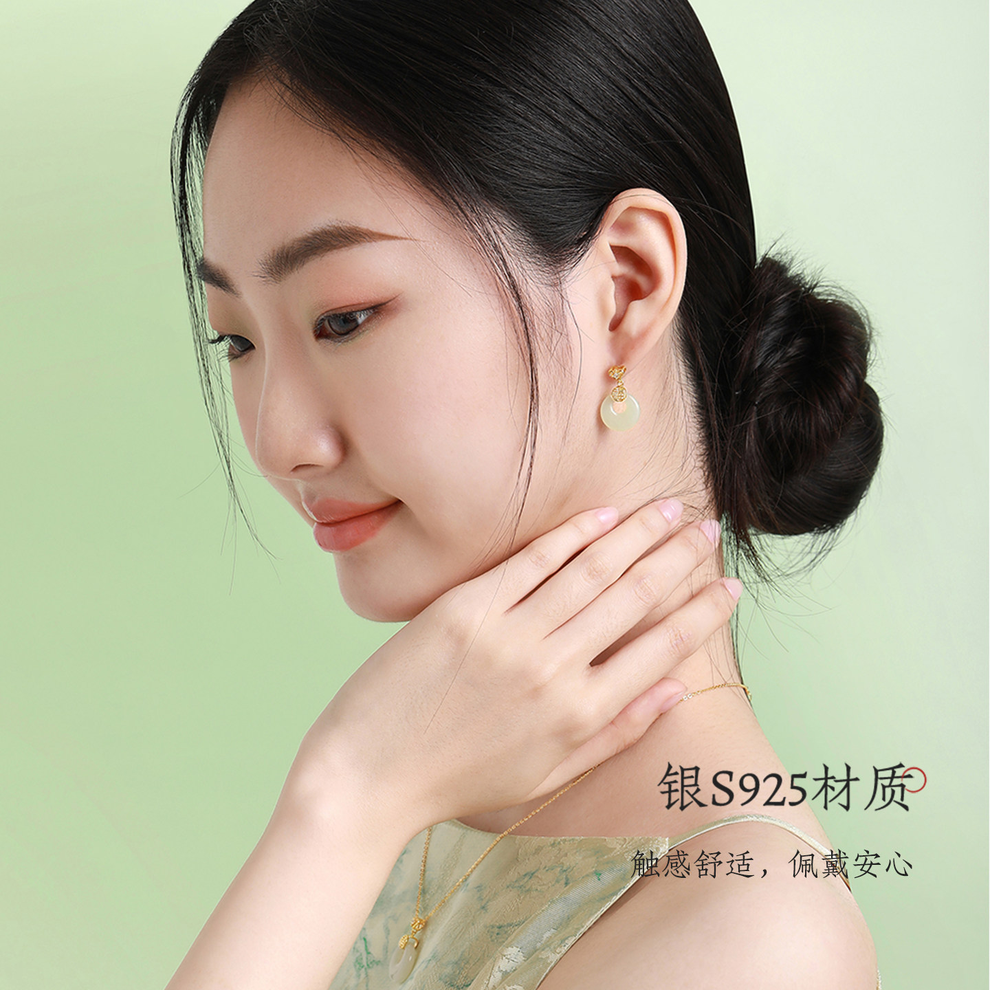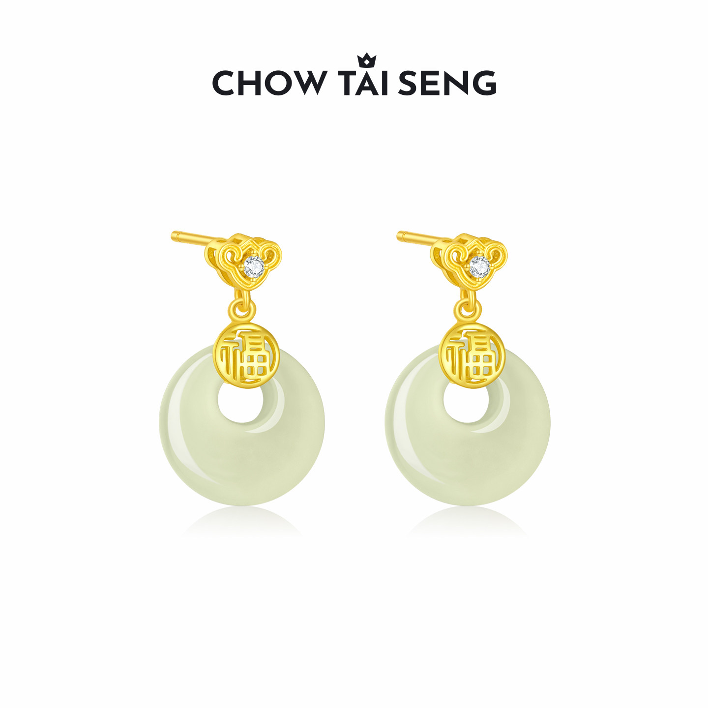 周大生和田玉耳钉女生平安扣新中式耳饰纯银耳环生日礼物送女友