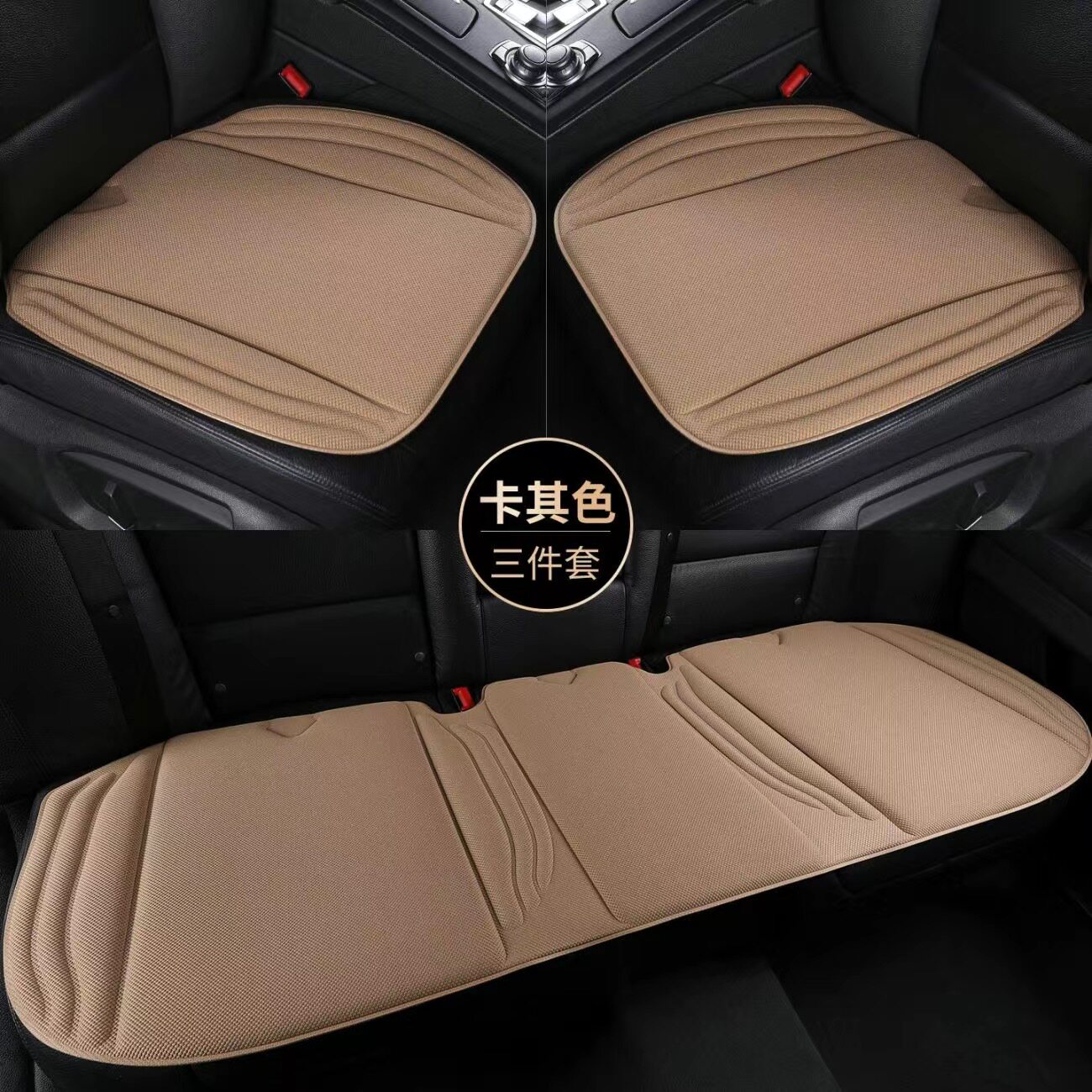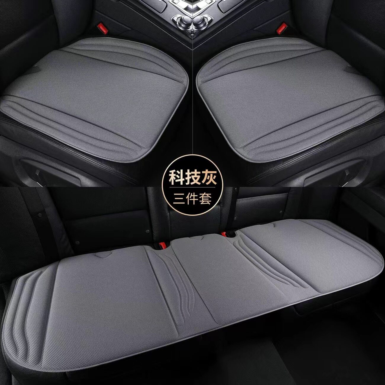 新款科技布四季通用汽车坐垫无靠背屁股垫方垫三件套后排三人长座