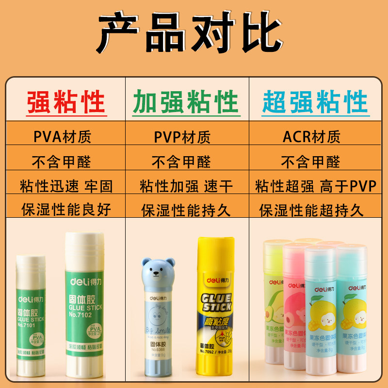得力固体胶棒儿童胶棒学生用手工胶水幼儿园超粘强力diy制作材料专用无毒安全高粘度强力文具用品幼儿棒棒笔