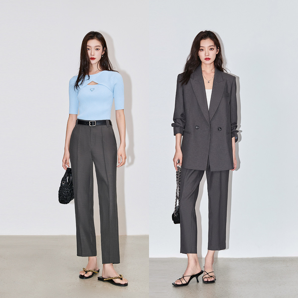 LILY2024秋新款女装通勤都市气质设计感显瘦小直筒九分西装休闲裤