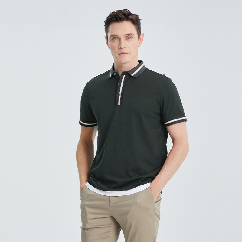 SHANSHAN杉杉中年男士短袖POLO衫休闲2025夏季新款撞色翻领T恤男