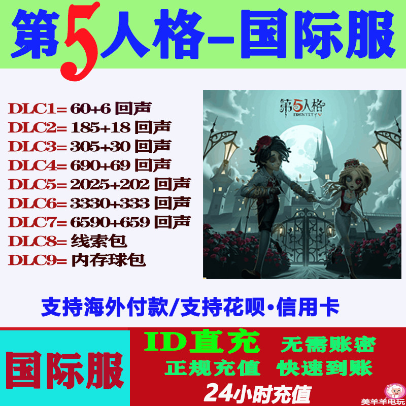 第五人格国际服亚服欧美服直充回声IDENTITY V充值储值氪金课金