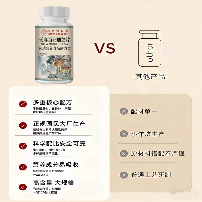 天麻当归味鹿筋片官方旗舰店正品草本萃取药房直售120片多规格