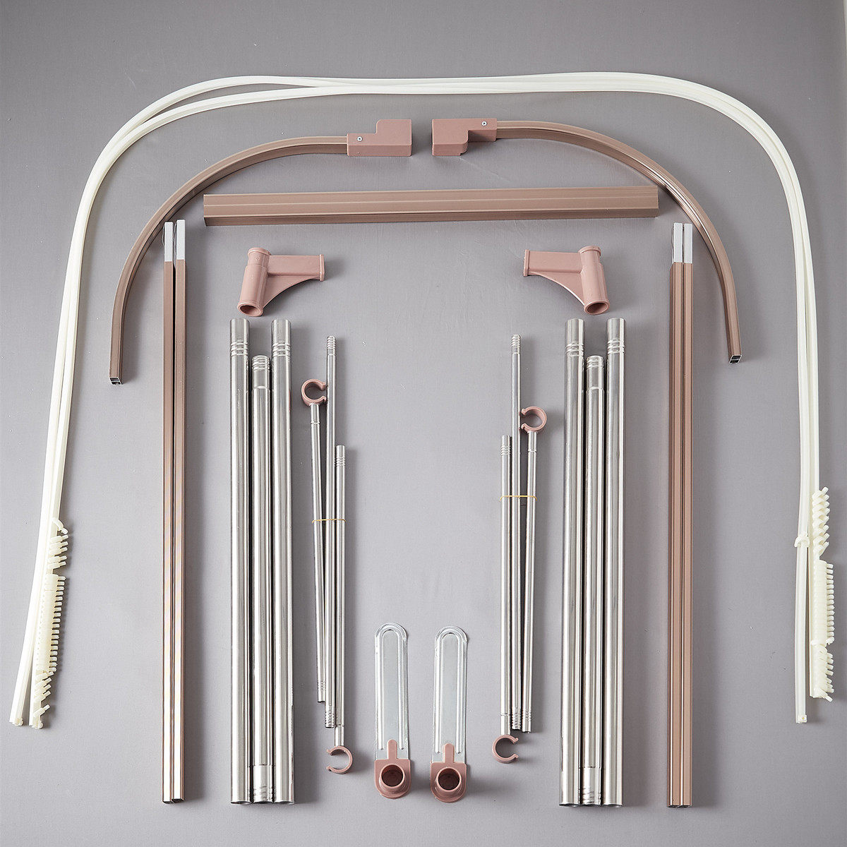 导轨蚊帐加厚加密蚊帐三开轨道u型门双人家用床落地加粗加厚支架