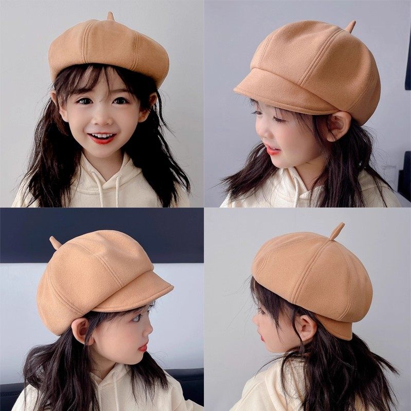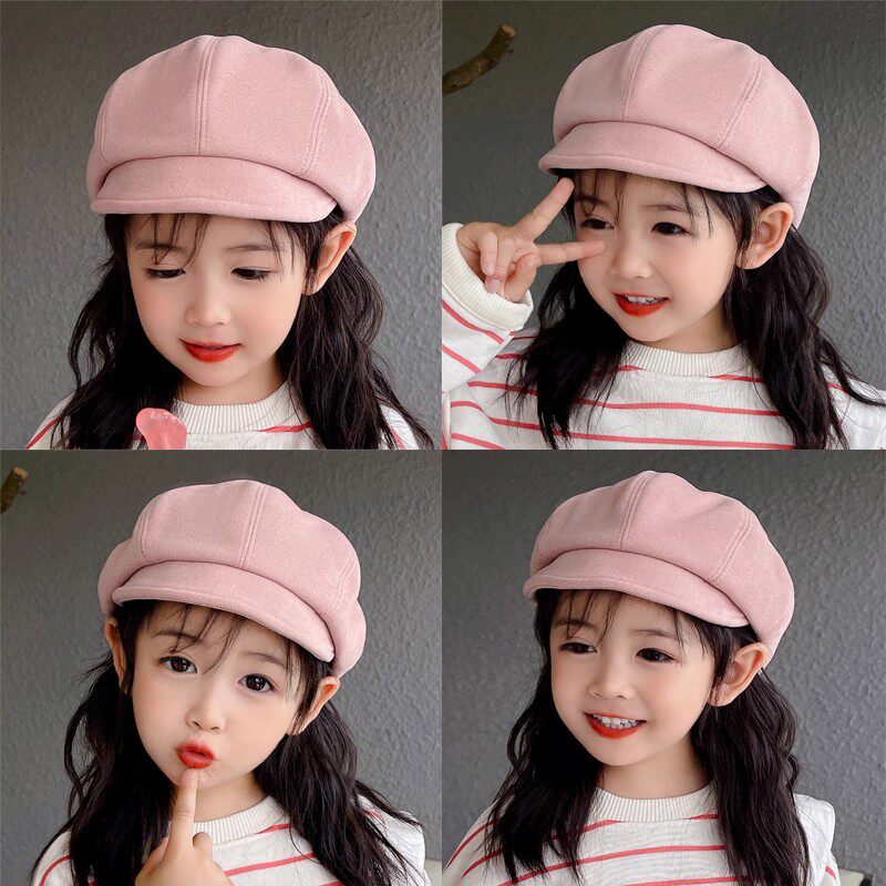 帽宝宝公主画家帽秋冬帽子儿童春秋潮可爱八角帽贝雷帽粉色时尚