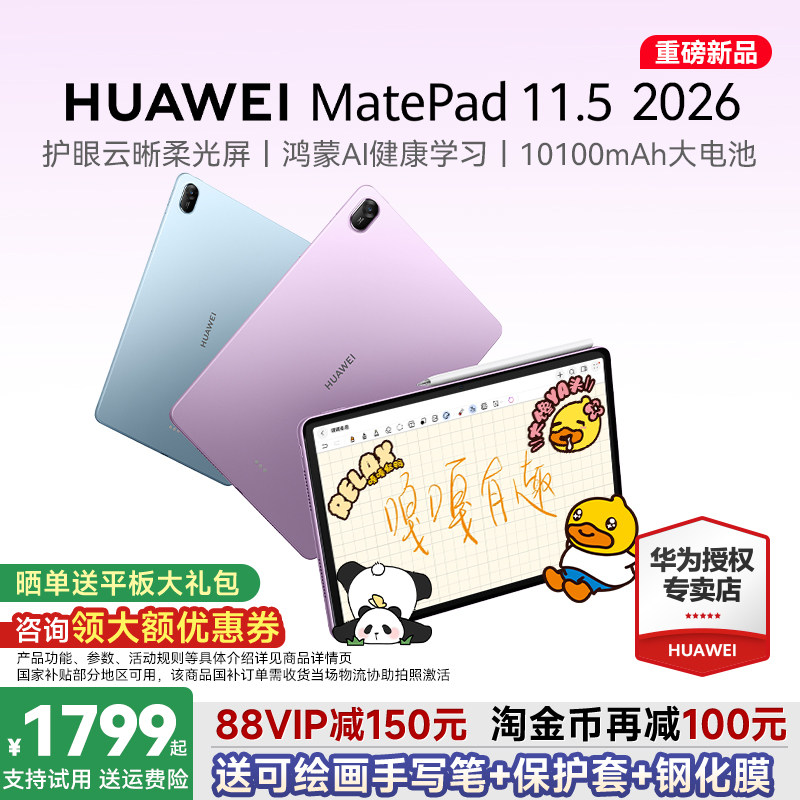 【88VIP减200】华为平板HUAWEI MatePad 11.5 2026S新款ipad平板电脑学生绘画笔记柔光屏护眼学习机官方旗舰