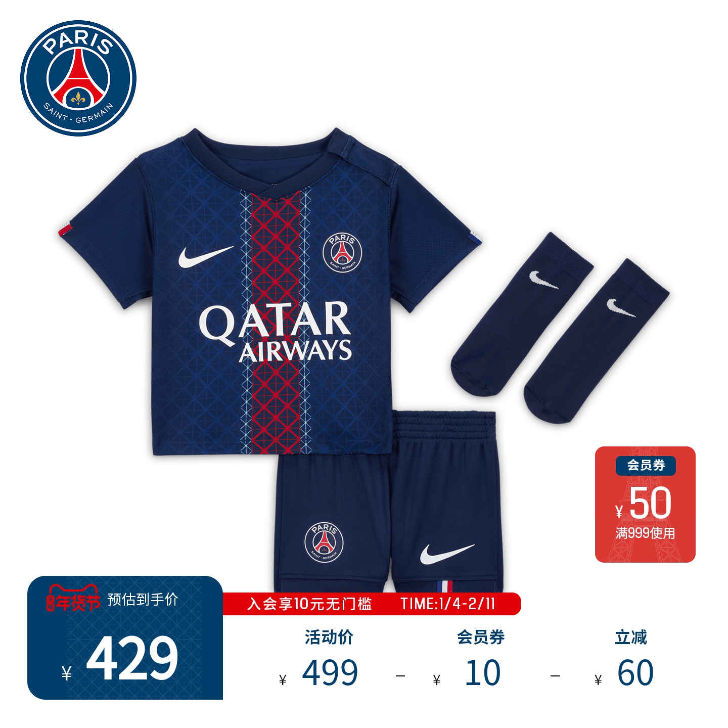 巴黎圣日耳曼25/26赛季主场婴童短袖短裤短袜足球服速干球衣套装