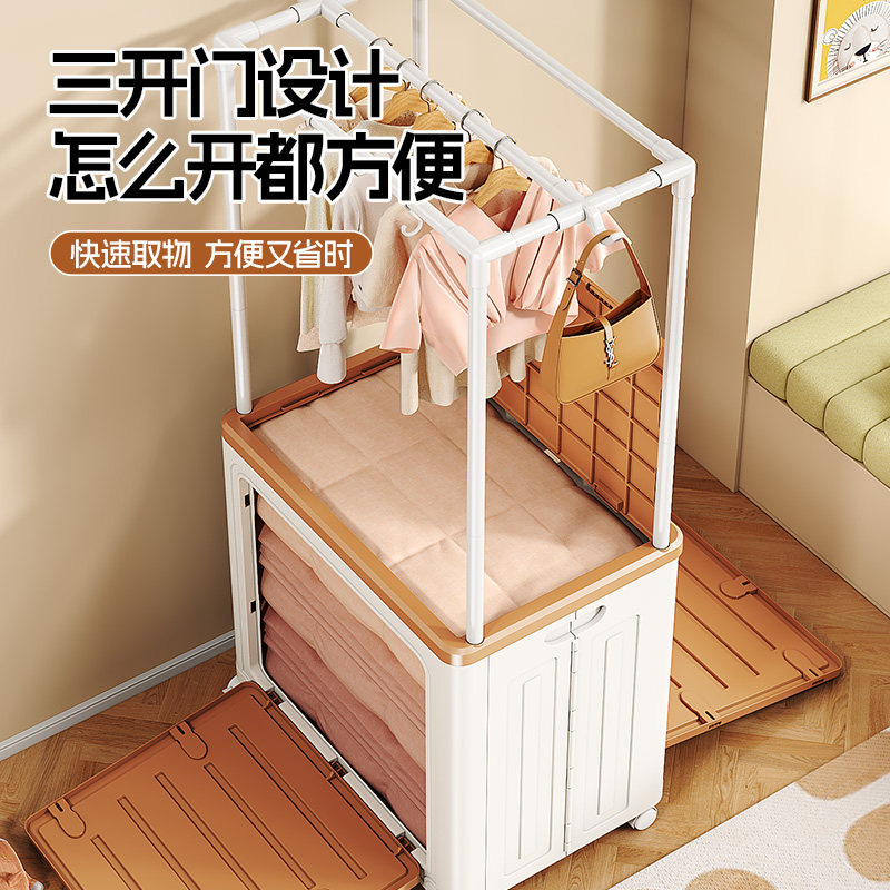 收纳箱大容量超大家用衣帽架翻盖衣服整理箱带轮加厚衣物储物柜子
