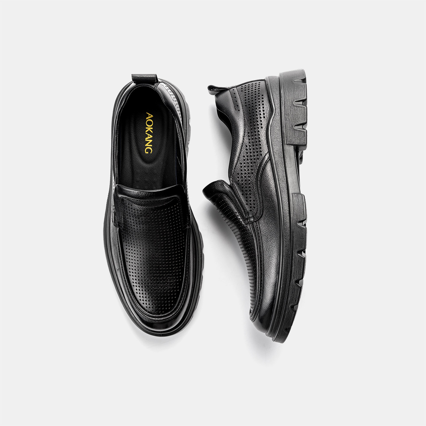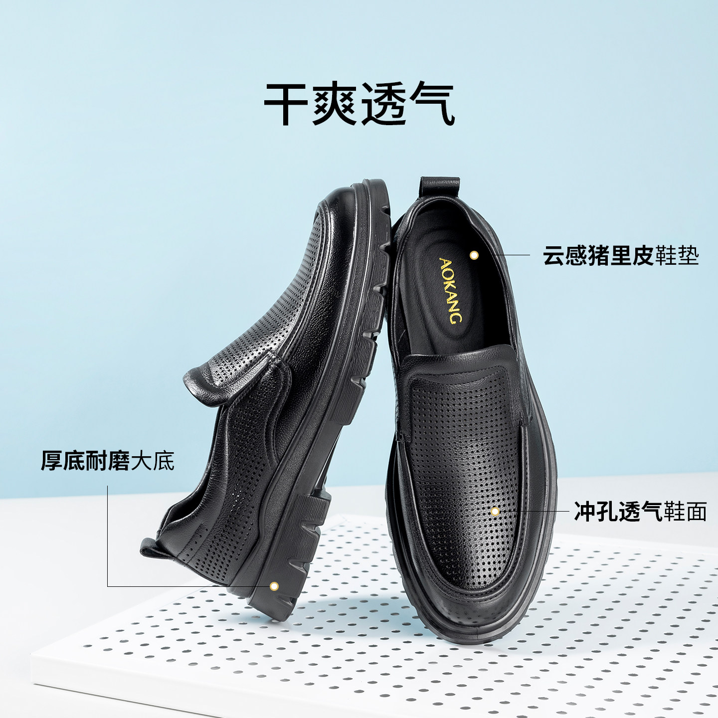 奥康 男鞋2026夏季新款休闲皮鞋真皮透气公务一脚蹬通勤豆豆鞋