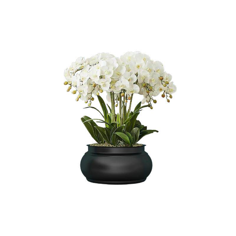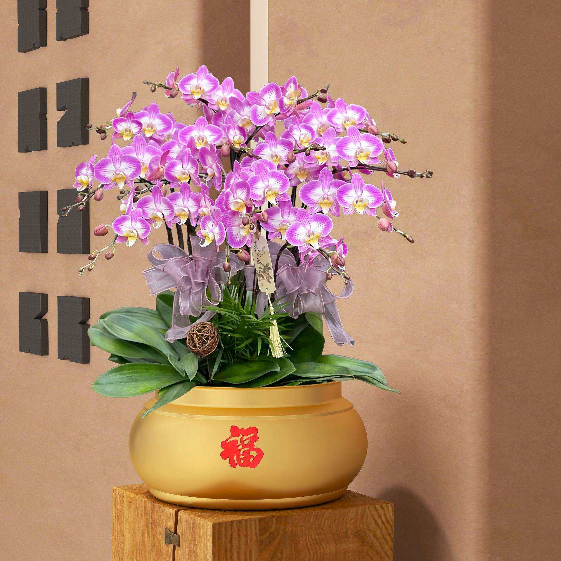新款蝴蝶兰花盆大蕙兰银柳冬青假花年宵花福桶插花摆件聚宝盆花器