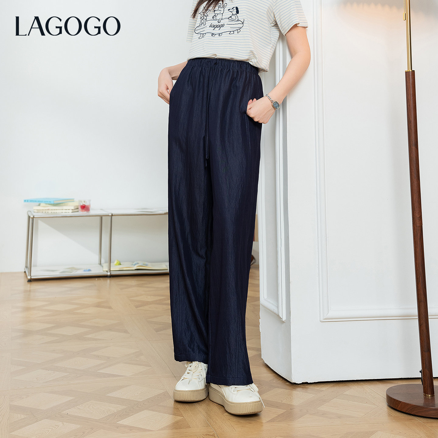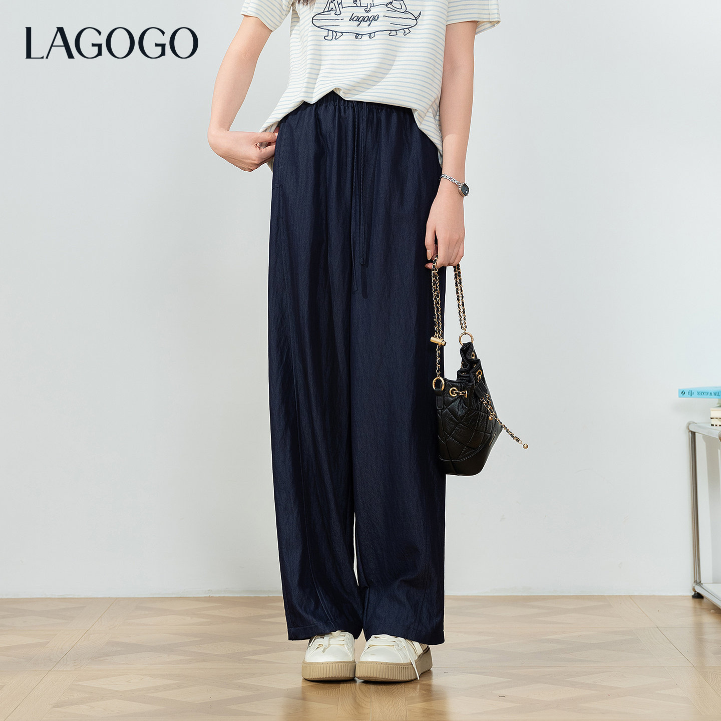 LAGOGO垂感遛弯裤休闲阔腿裤女拉谷谷2026年夏新款高腰显瘦山本裤