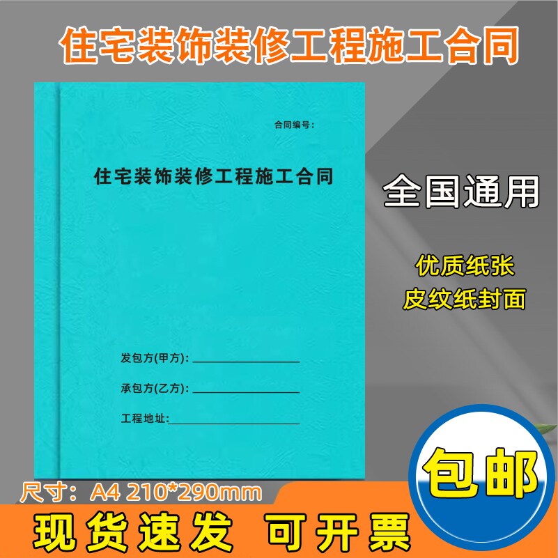 住宅装修合同家庭装修收据收款收据设计合同装修公司装饰装修合同家庭装修合同收据单收据装饰装修专用合同