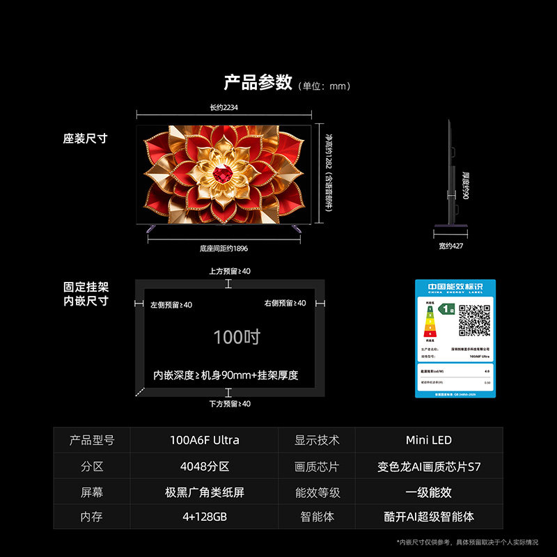 创维A6F Ultra100英寸 Mini LED内置回音壁电视机 以旧换新补贴