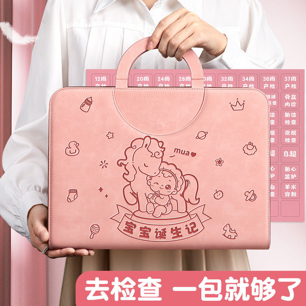 孕检收纳册手提包袋孕期档案册建档报告体检单孕妈妈孕妇必备手册产检本资料怀孕蛇宝宝检查记录收纳袋文件夹