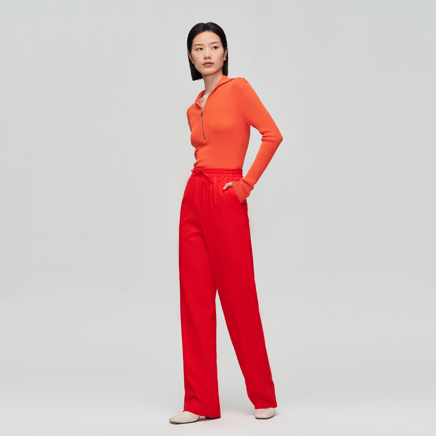 松紧腰身 直筒版型 配套西服