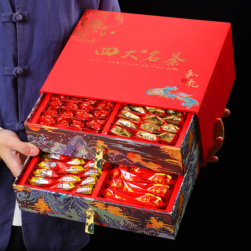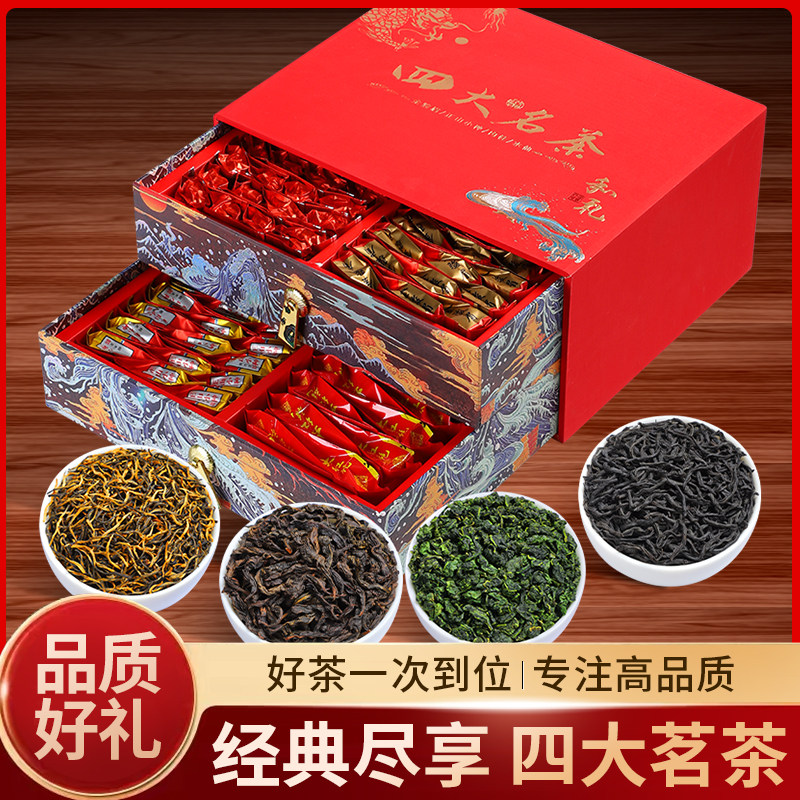 四大茗茶叶礼盒装金骏眉大红袍铁观音小种红茶小罐过年货节日送礼