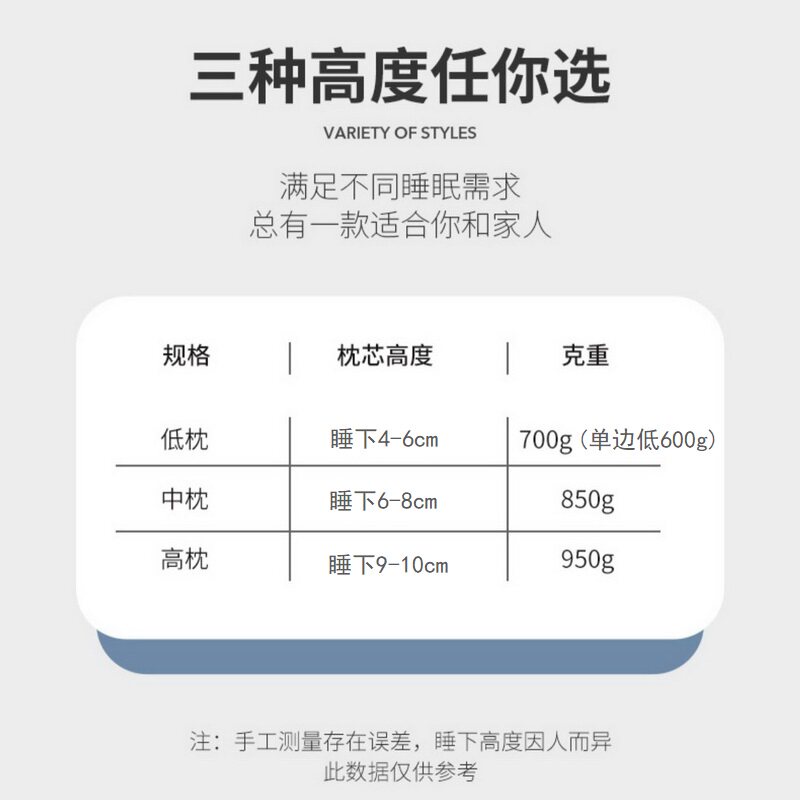 A类母婴枕头护颈椎枕芯助睡眠学生宿舍男酒店专用单人低家用一对