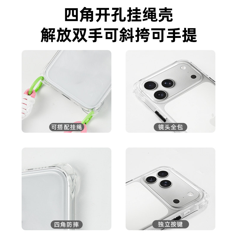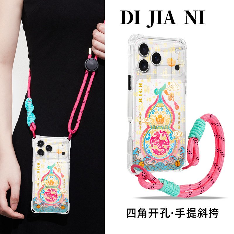 福马粉蓝适用苹果17pro手机壳透明手腕iphone16promax马年挂绳可拎15可背斜挎14pm红色新年13手提12背带新款