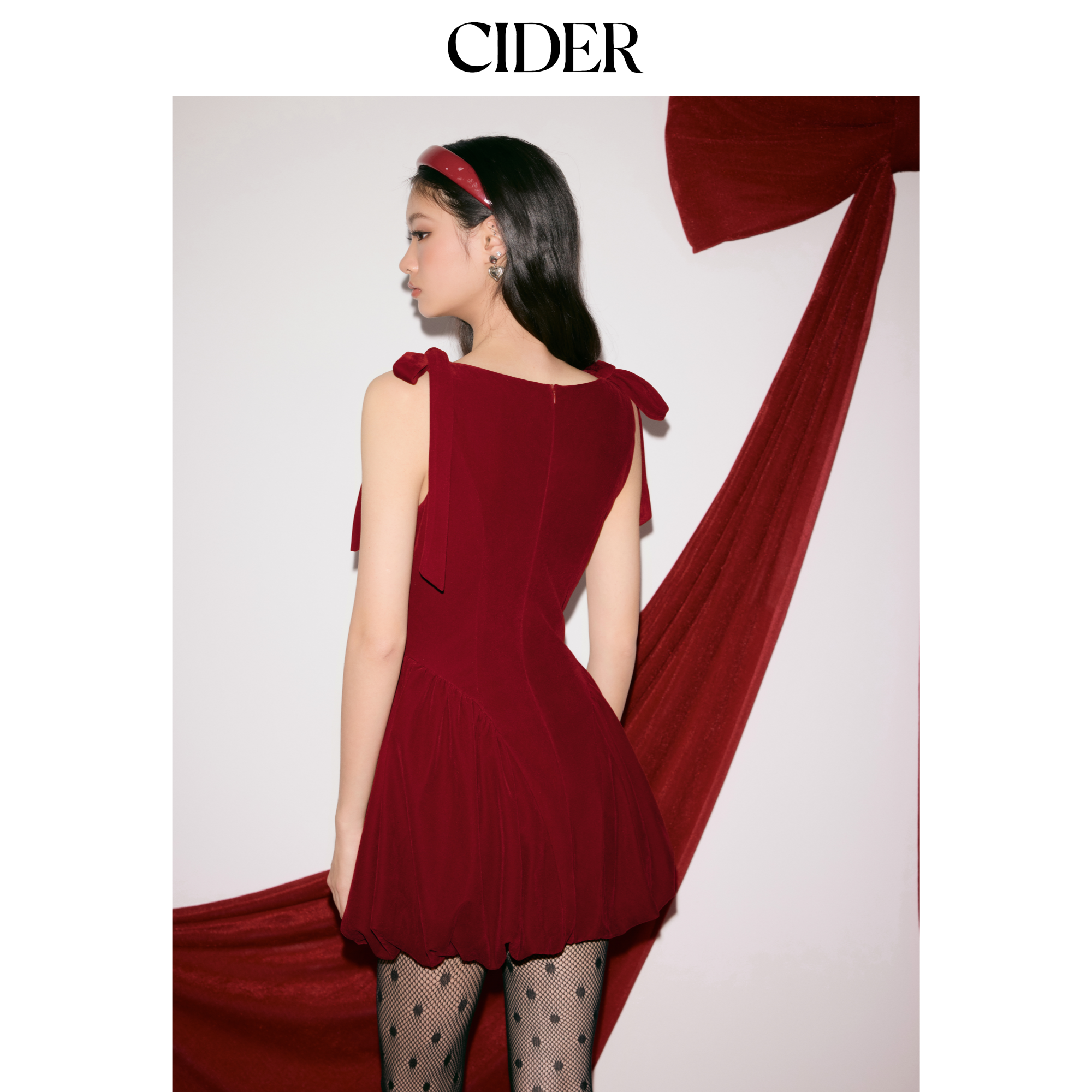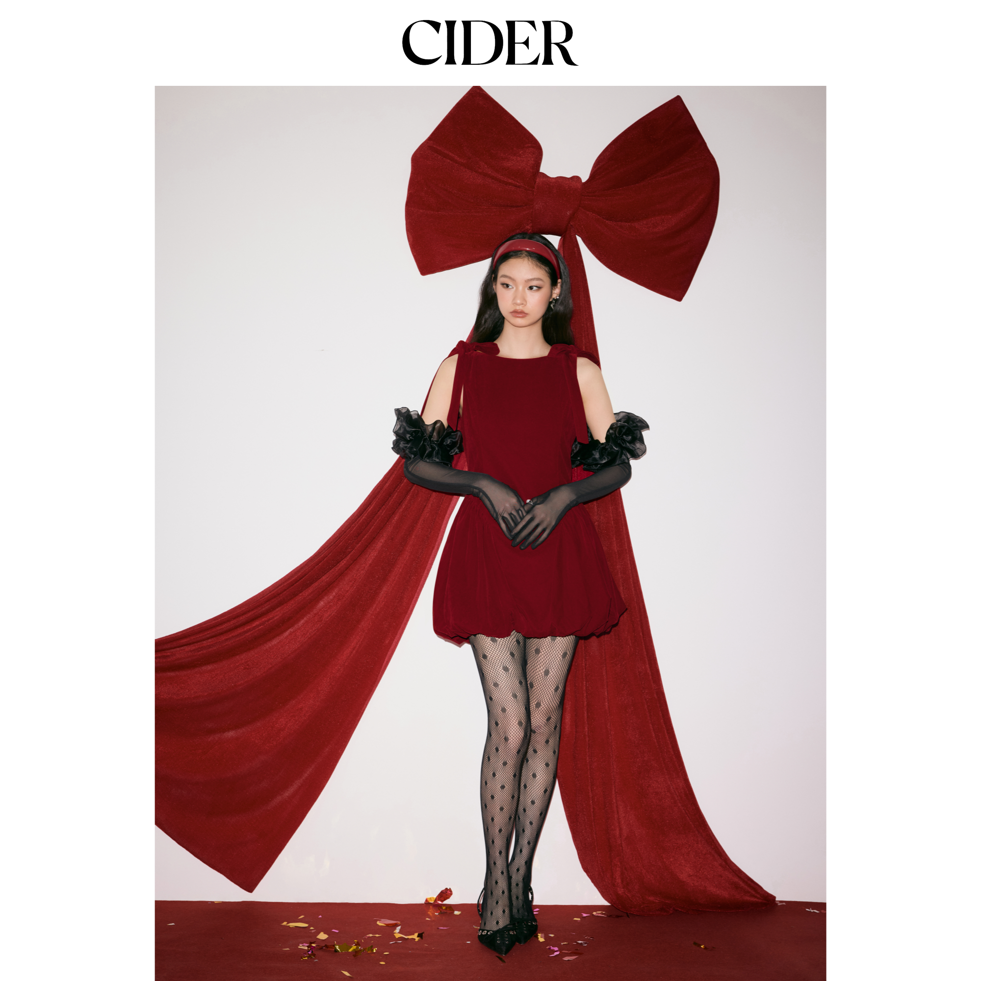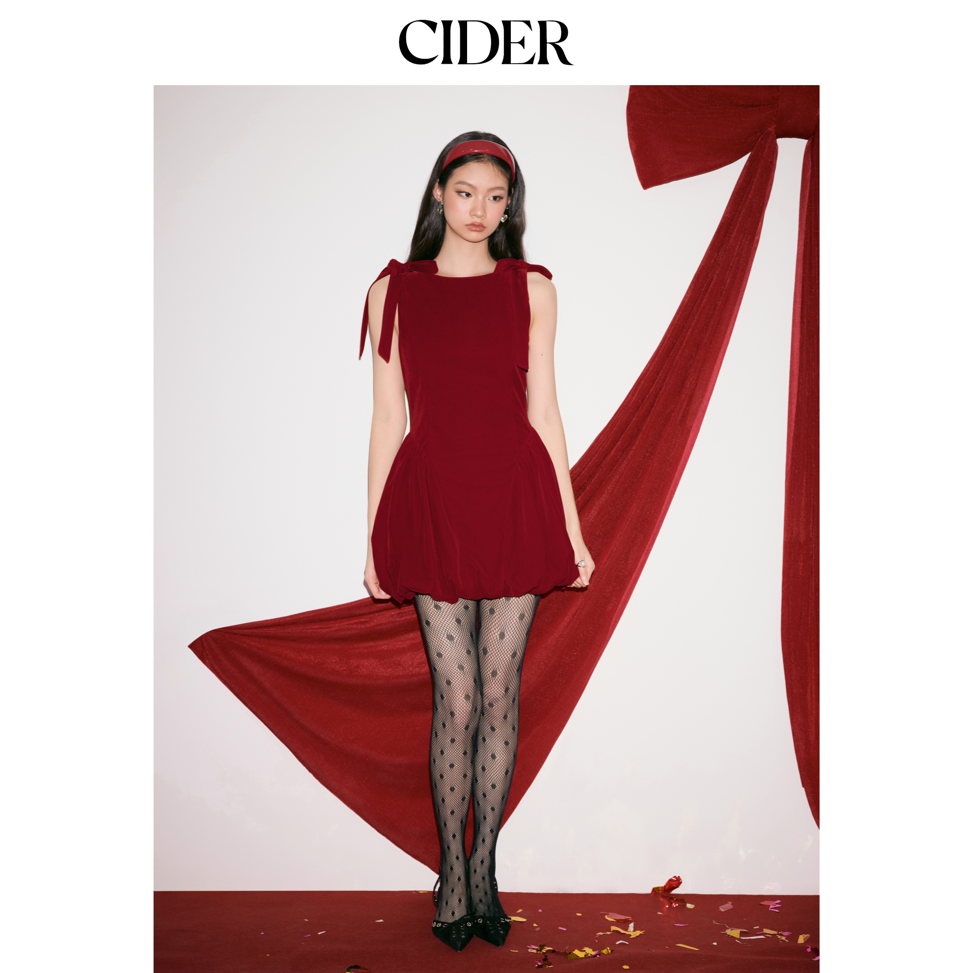 【明星同款】CIDER新年穿搭丝绒蝴蝶结泡泡连衣裙女装114792793