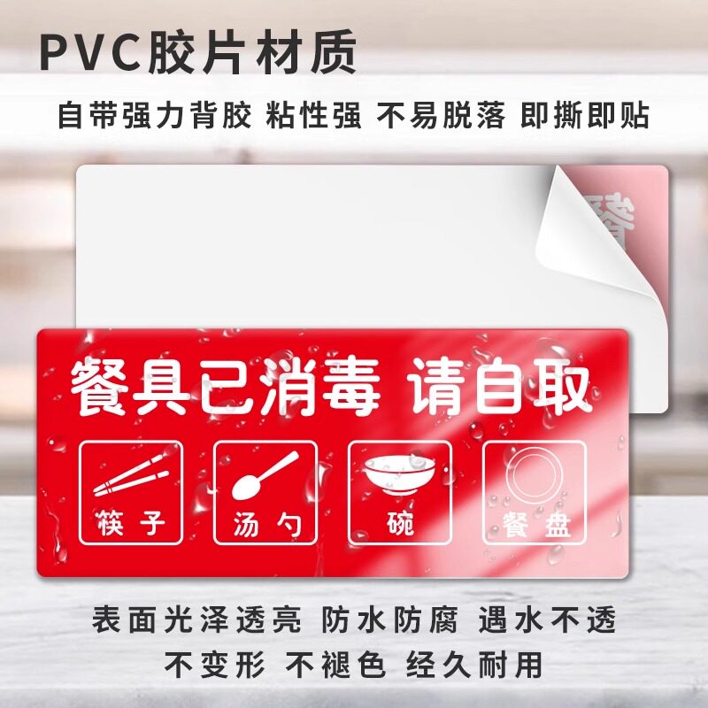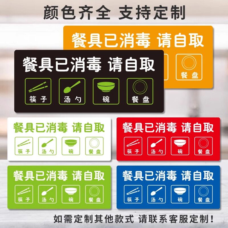 餐具已消毒提示牌餐具请自取指示牌餐厅饭店火锅烧烤店自助餐取勺取碗取筷处调料区标识牌亚克力墙贴定制