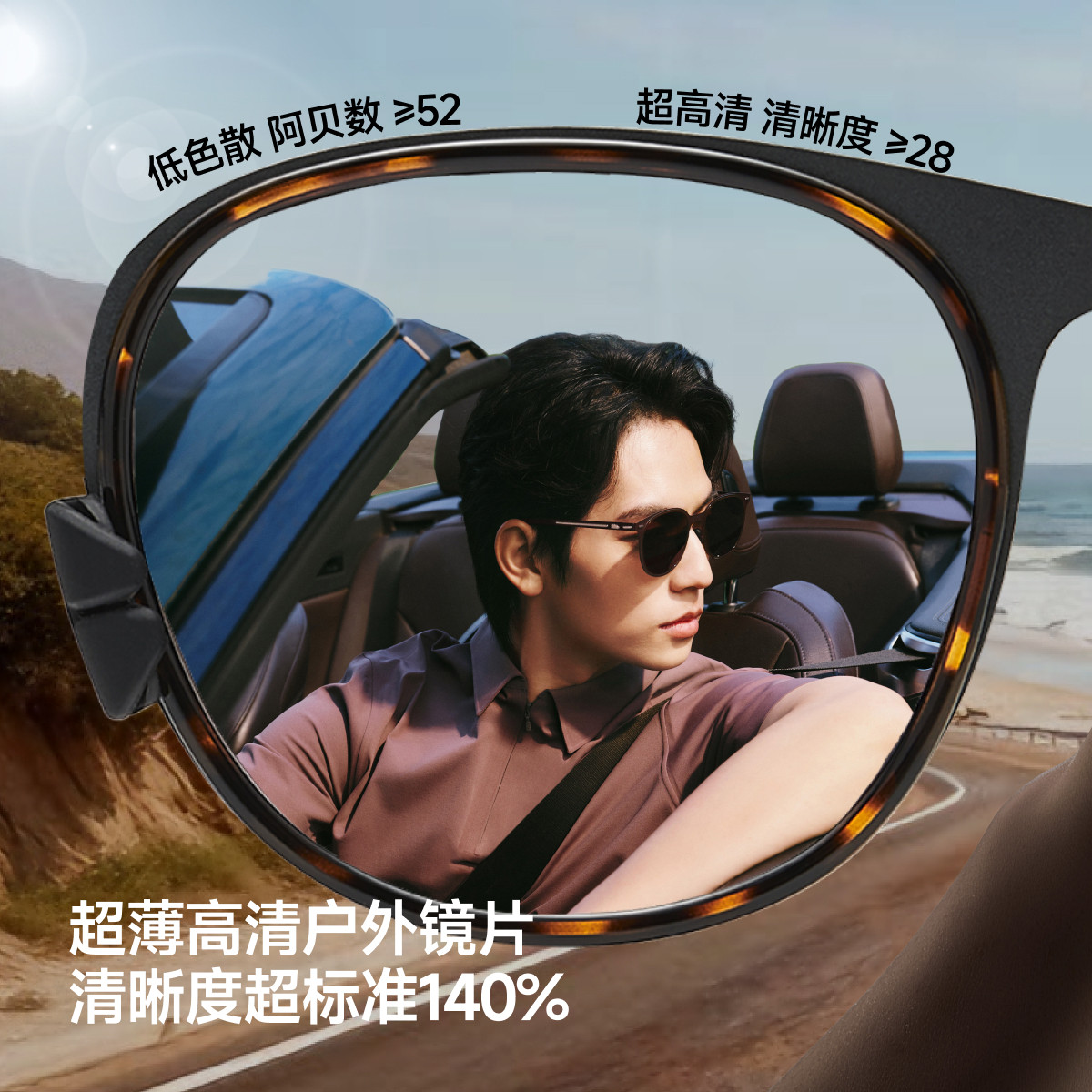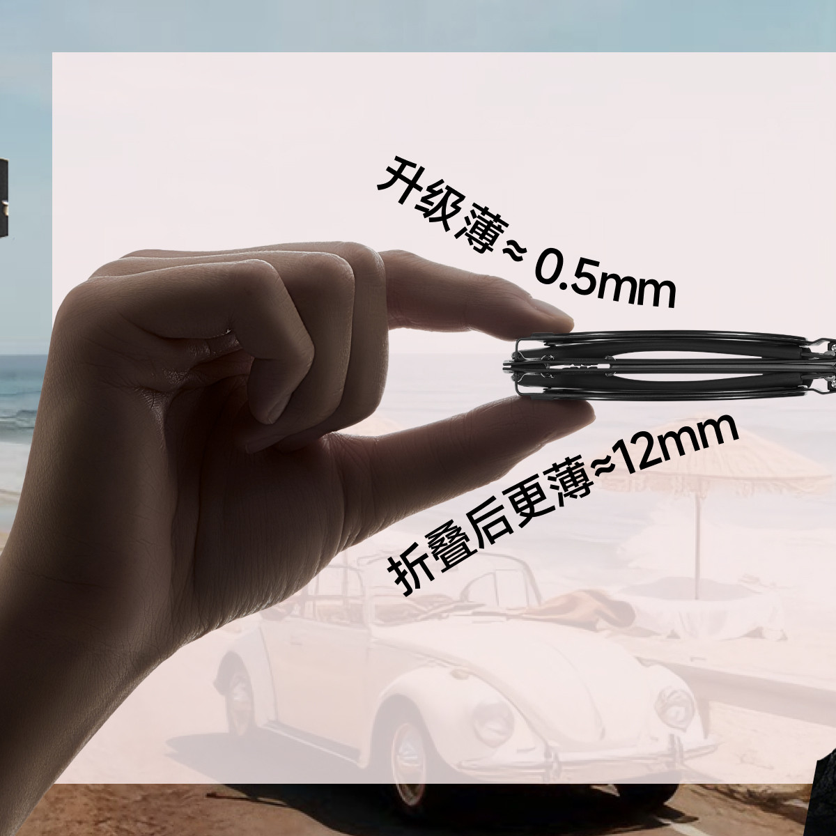 蕉下超薄卡片折叠墨镜男女款防紫外线开车方圆框防晒户外太阳眼镜