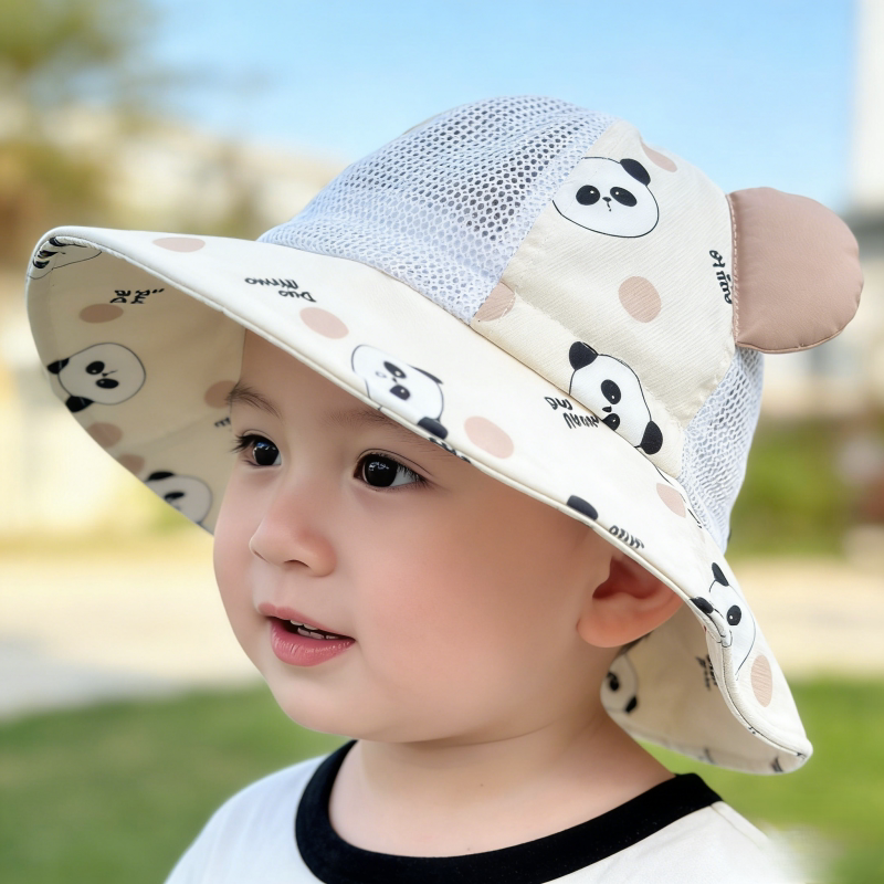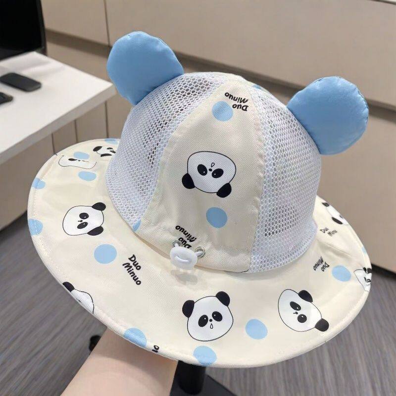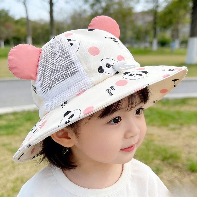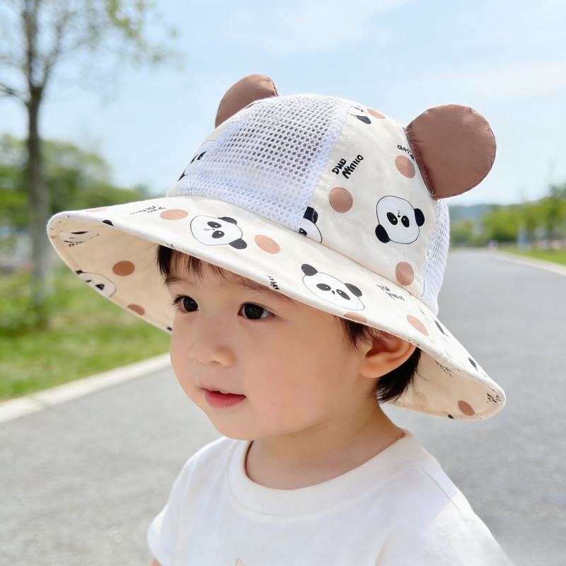 宝宝帽子夏季凉帽大帽檐防晒太阳帽男孩儿童遮阳渔夫帽女婴儿熊猫