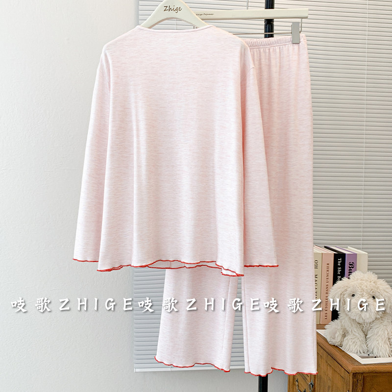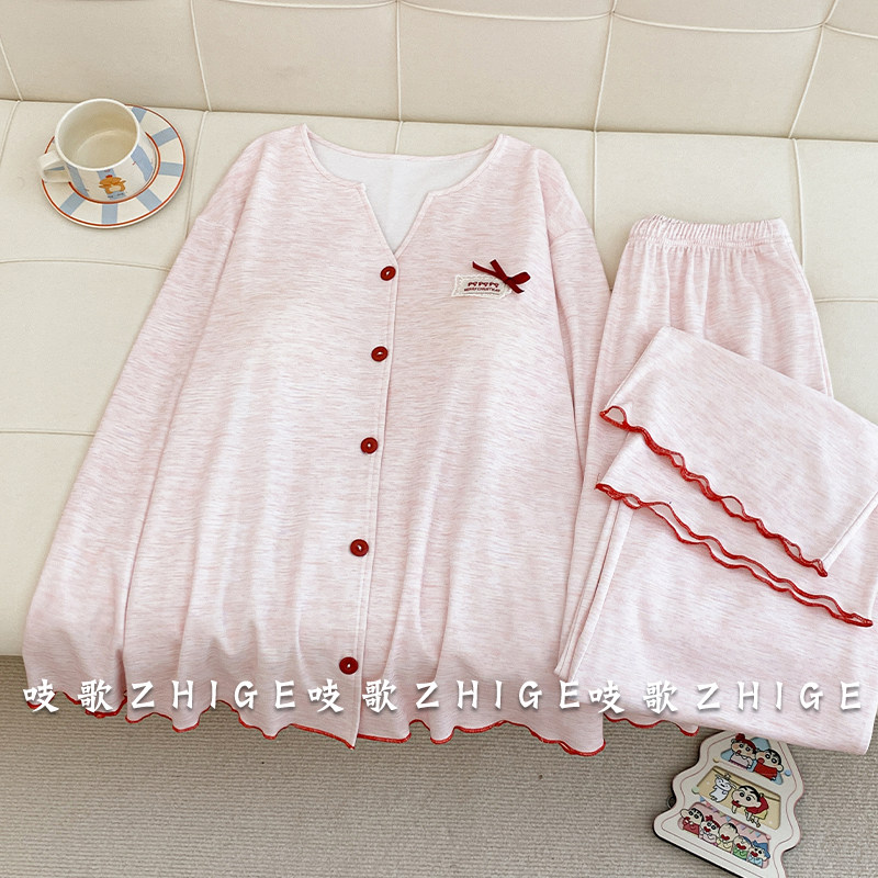 棉质女士绝美睡衣春秋季大码长袖带胸垫可外穿夏天薄款家居服套装