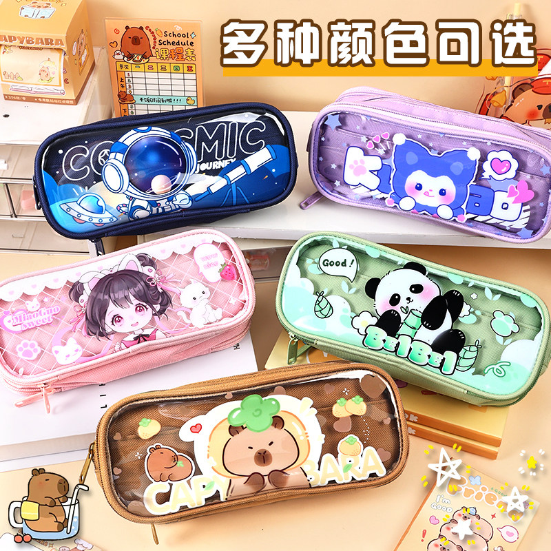 卡皮巴拉大容量笔袋女生ins风新款熊猫文具盒女孩款高颜值儿童幼儿园小学生铅笔盒男孩子初中生痛包透明夹层