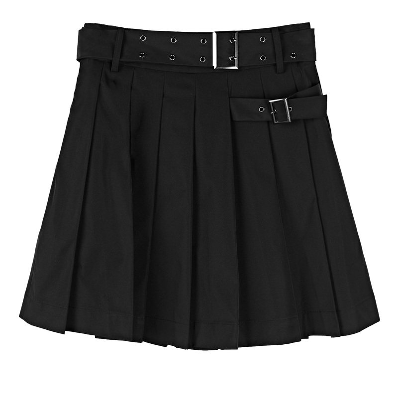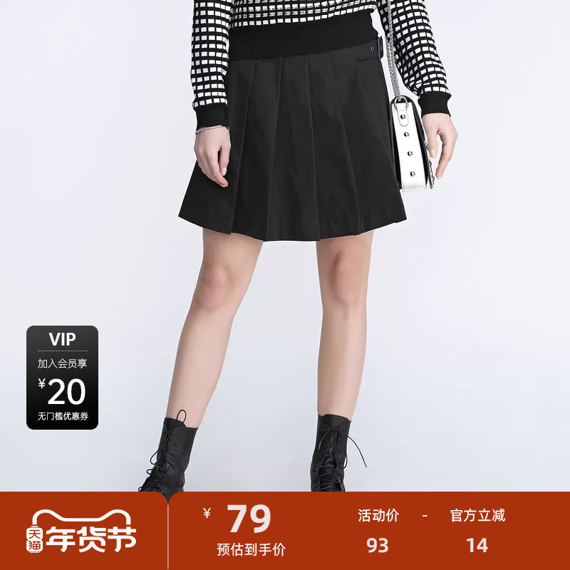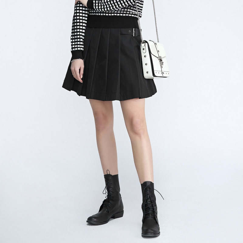 S·DEER圣迪奥女装新款通勤个性拼接收腰黑色百褶短裙S21181307
