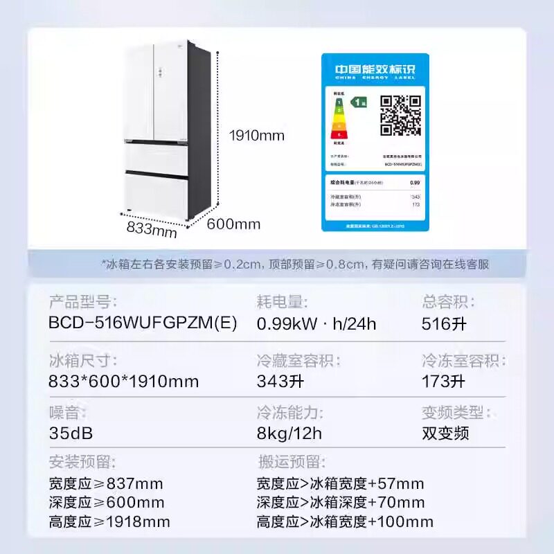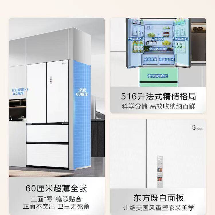 Midea/美的 BCD-516WUFGPZM(E)法式多门60CM嵌入式风冷无霜电冰箱