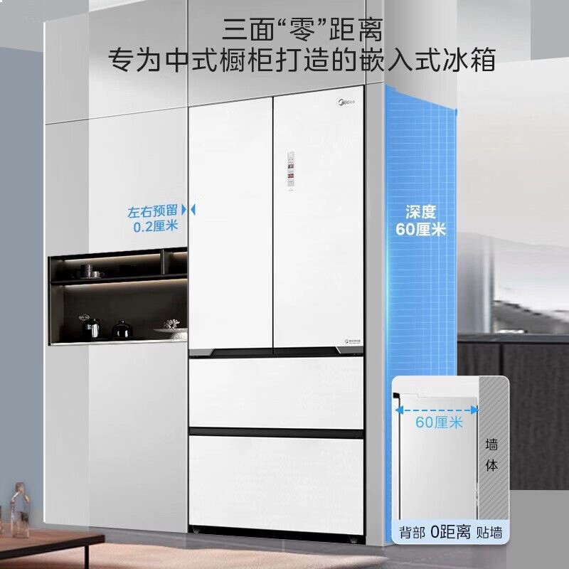双系统|美的M60小机皇520超薄零嵌入式冰箱家用法式多门四门双开