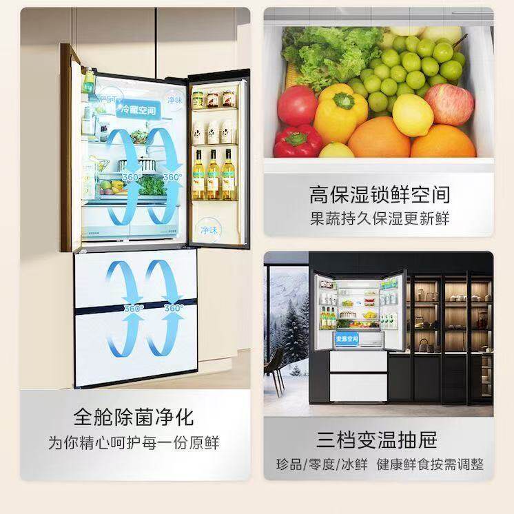 政府补贴美的M60机皇550零嵌入式双系统制冰冰箱家用法式双开四门