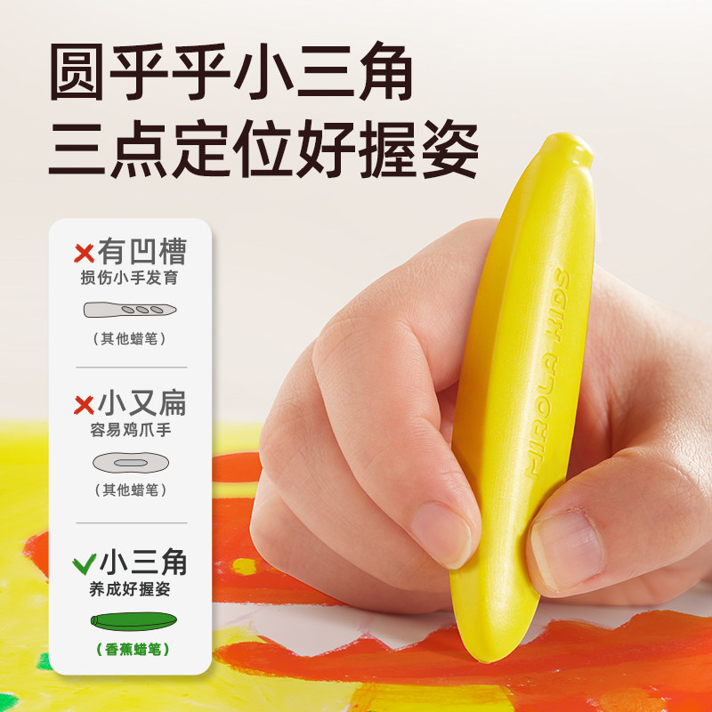 美乐童年儿童蜂蜡香蕉蜡笔不脏手无毒安全宝宝腊笔可水洗绘画笔套装美术小学生幼儿园专用婴幼儿炫彩棒油画棒
