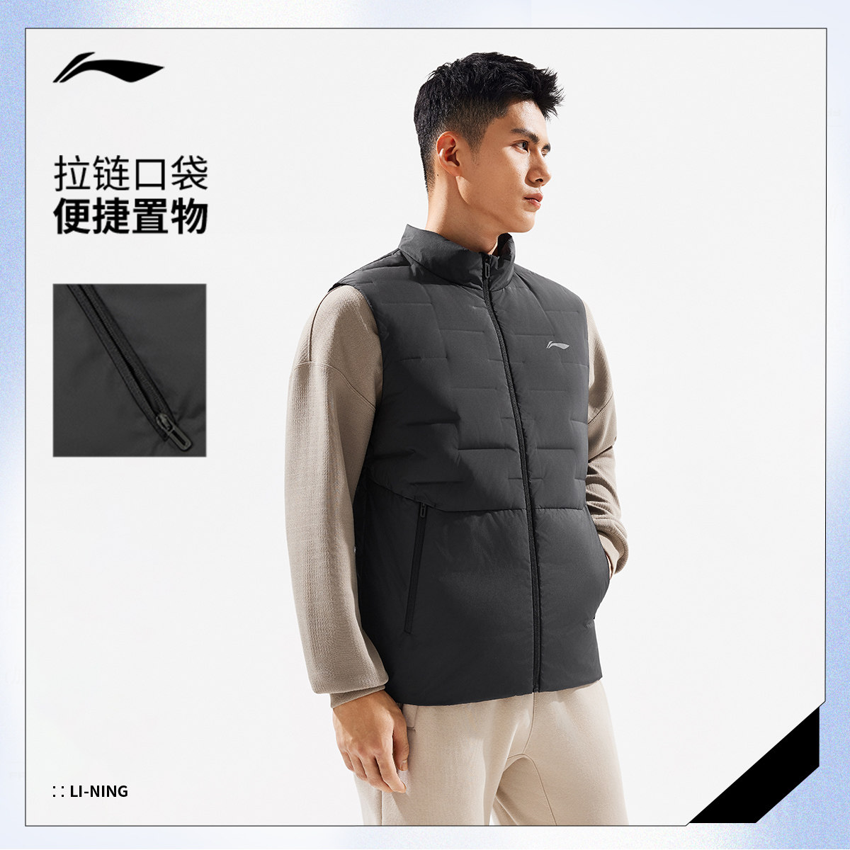 李宁羽绒马甲男士官方新款健身系列修身上衣冬季鸭绒百搭运动服