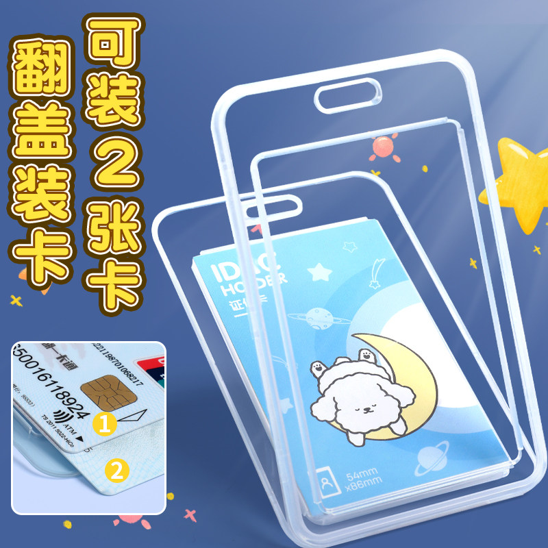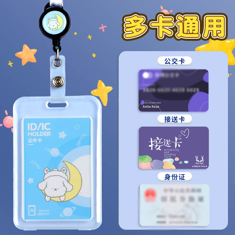 得力卡套公交卡证件保护套带挂绳学生校园饭卡工作证透明卡膜工牌厂牌挂脖硬卡包防丢神器胸牌胸卡伸缩