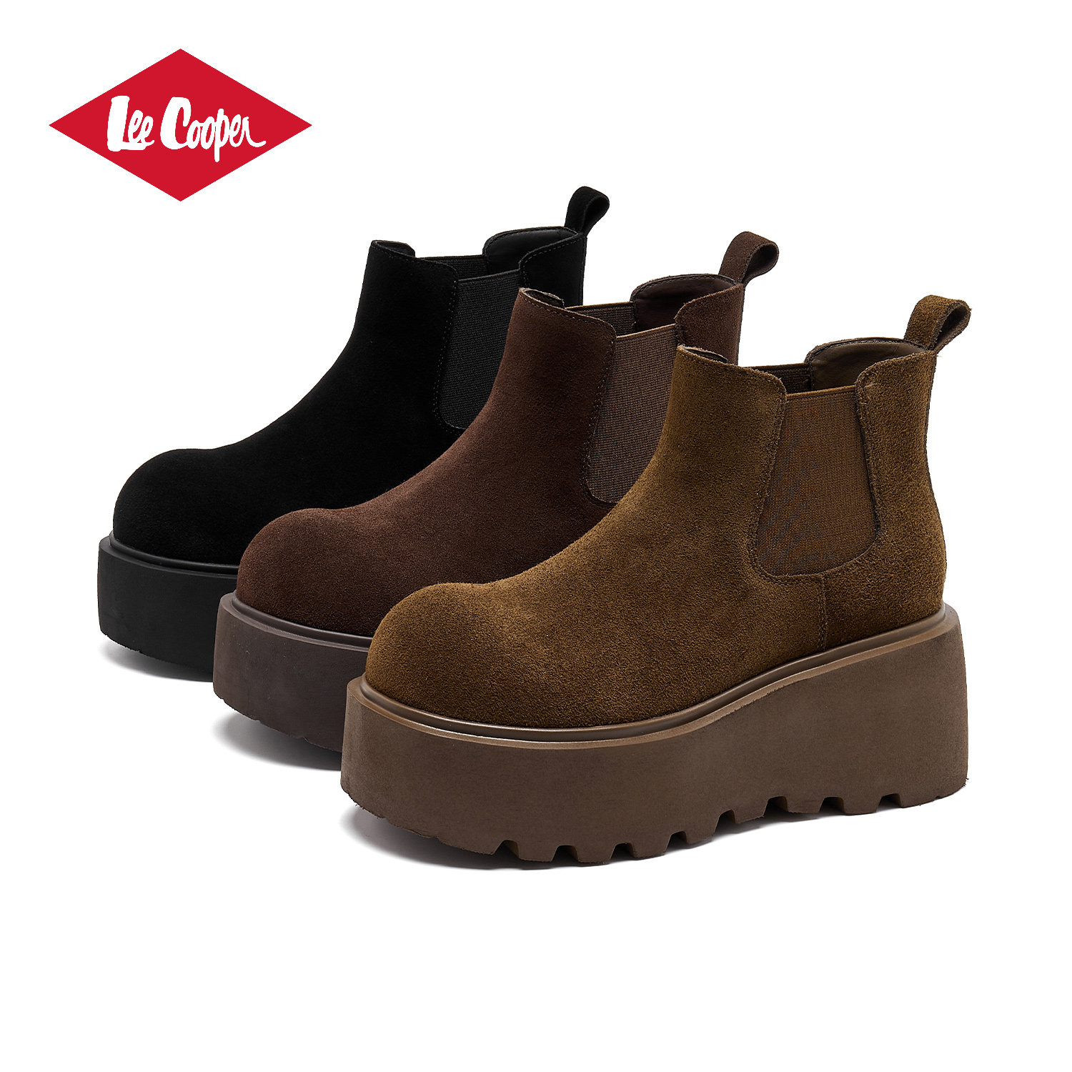 Lee Cooper厚底切尔西靴女2025新款复古美拉德短靴增高百搭烟筒靴