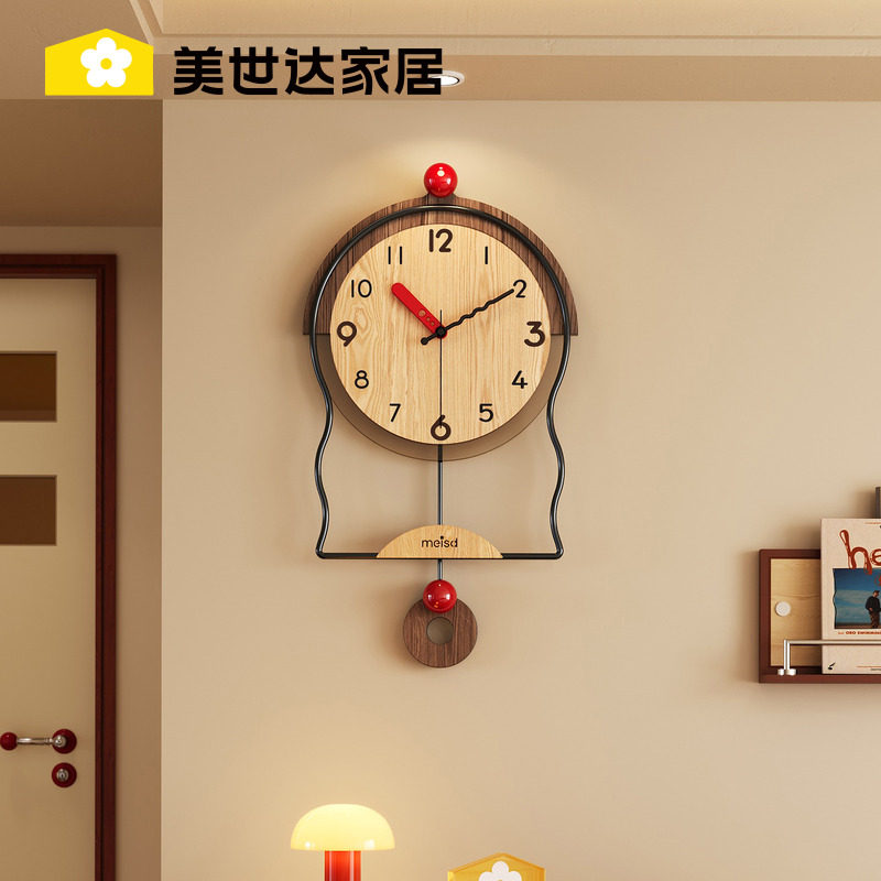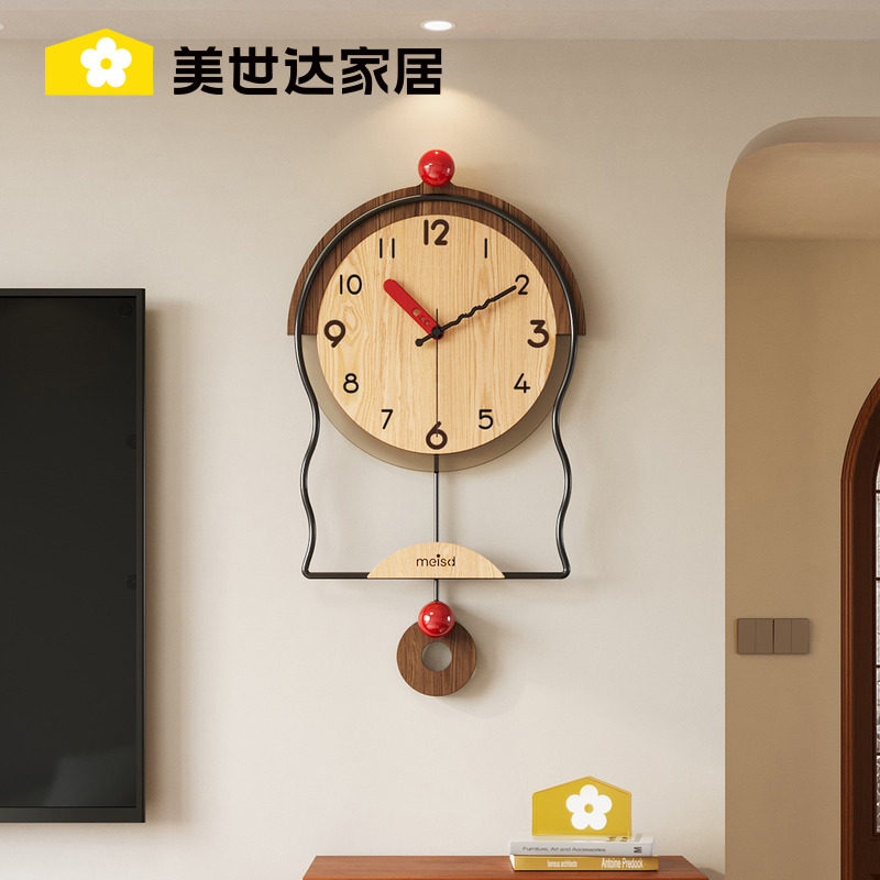 美世达装饰2026新款高级感挂钟客厅艺术钟表中古风简约时钟挂墙表