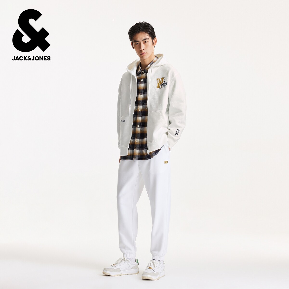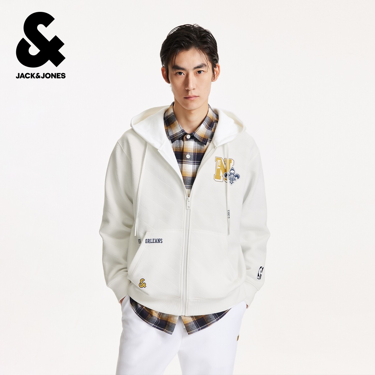杰克琼斯NBA联名款男装春秋新款运动风时尚潮流宽松拉链连帽卫衣