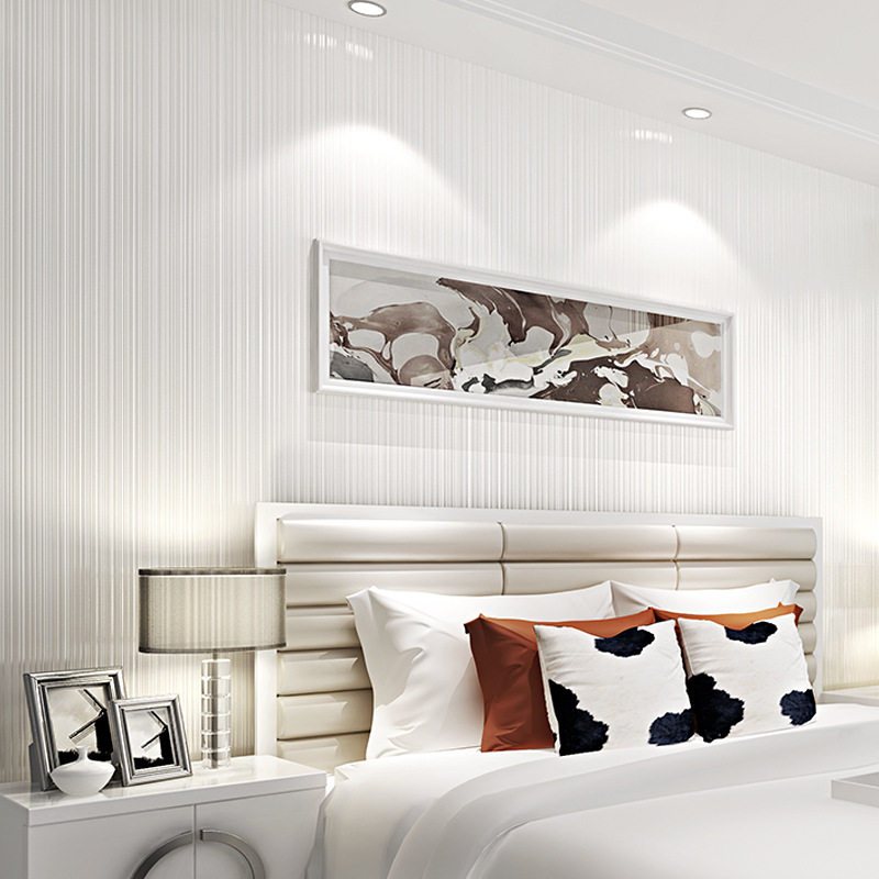 现代简约竖条纹墙纸纯色素色白色无纺布卧室客厅非自粘装修壁纸