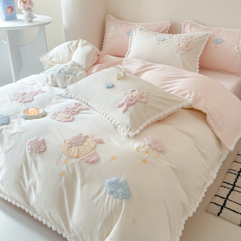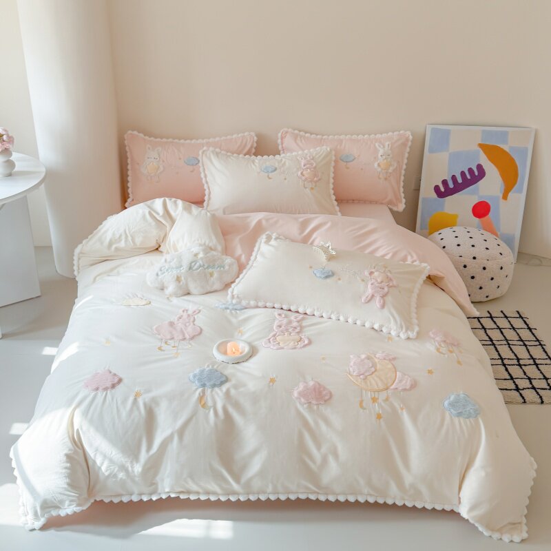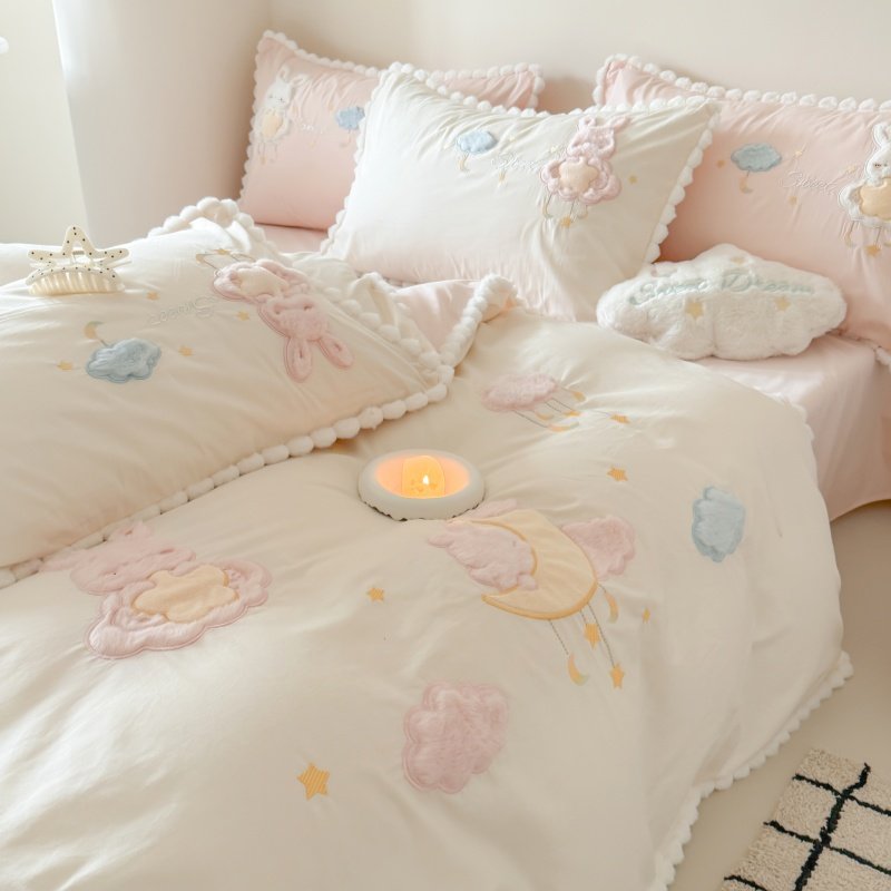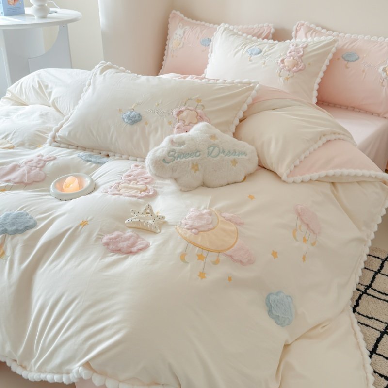 可爱云朵纯棉水洗棉四件套公主风全棉被套少女儿童小清新床上用品