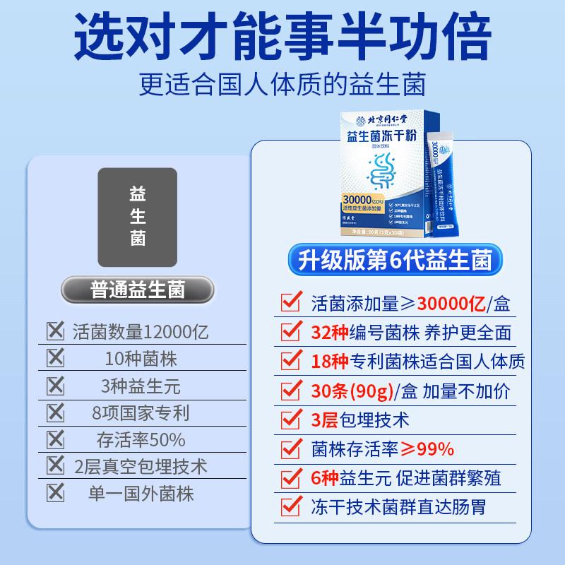北京同仁堂益生菌官方旗舰店正品冻干粉大人调理肠胃成人肠道秘便