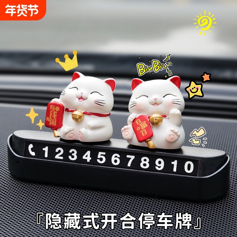 车载招财猫临时停车号码牌挪车电话牌汽车高级感装饰车内饰品摆件