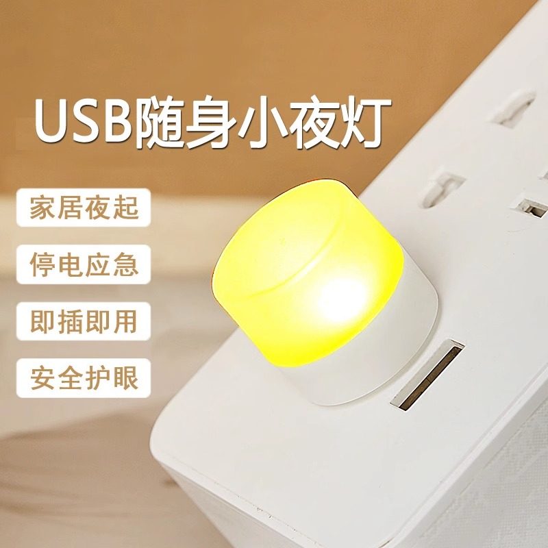 创意便携迷你USB小夜灯超亮护眼迷你led灯便携随身插电充电宝可用学生宿舍床头护眼LED氛围灯应急家用床头用