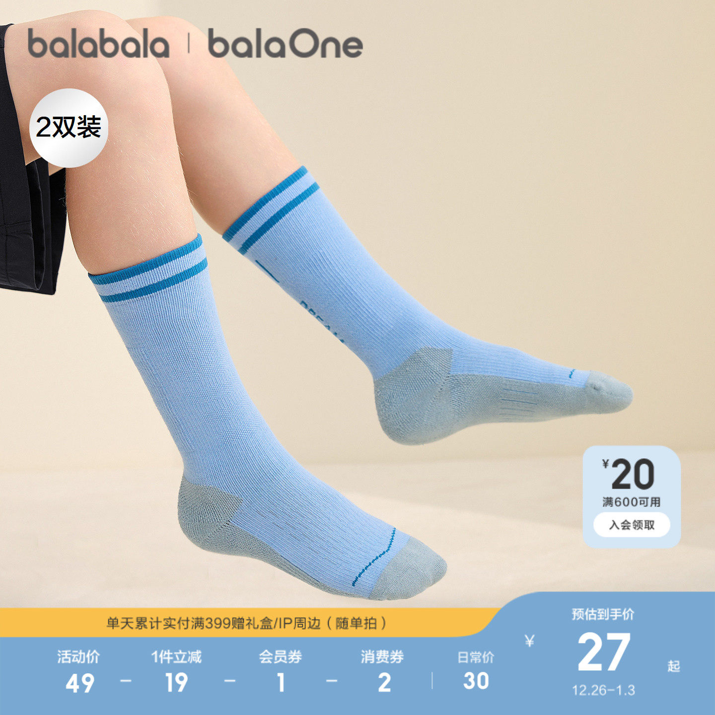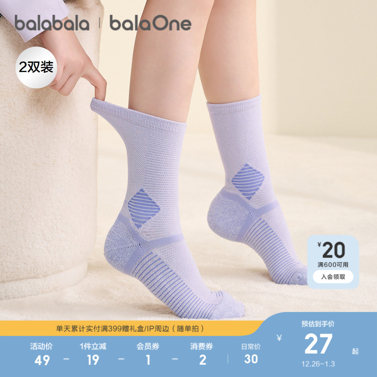 巴拉巴拉儿童袜子秋冬男女童棉袜吸湿学生打底两双装运动袜抗菌