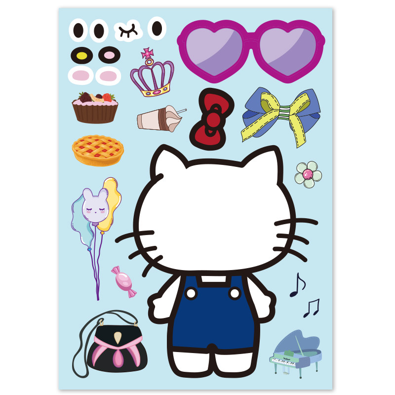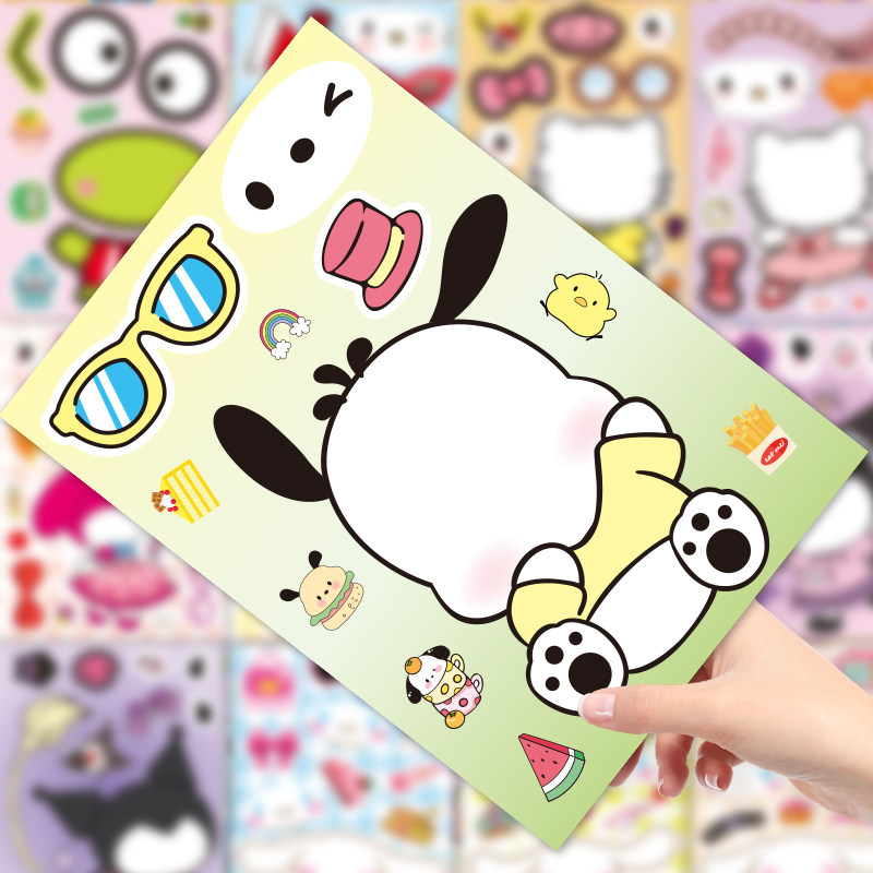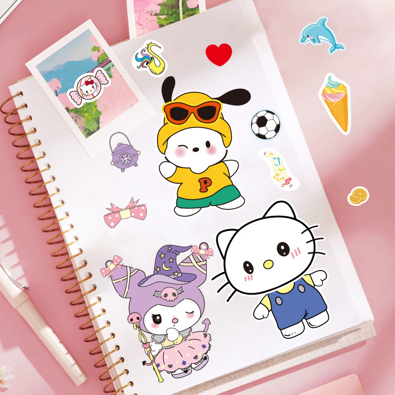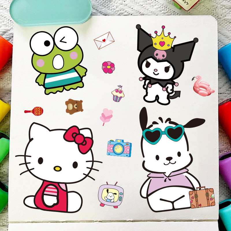 爆款图集贴纸免剪切美乐蒂大耳狗贴花小kIT猫帕恰狗卡通动物贴花动手动脑益智手帐贴大眼蛙多种多样