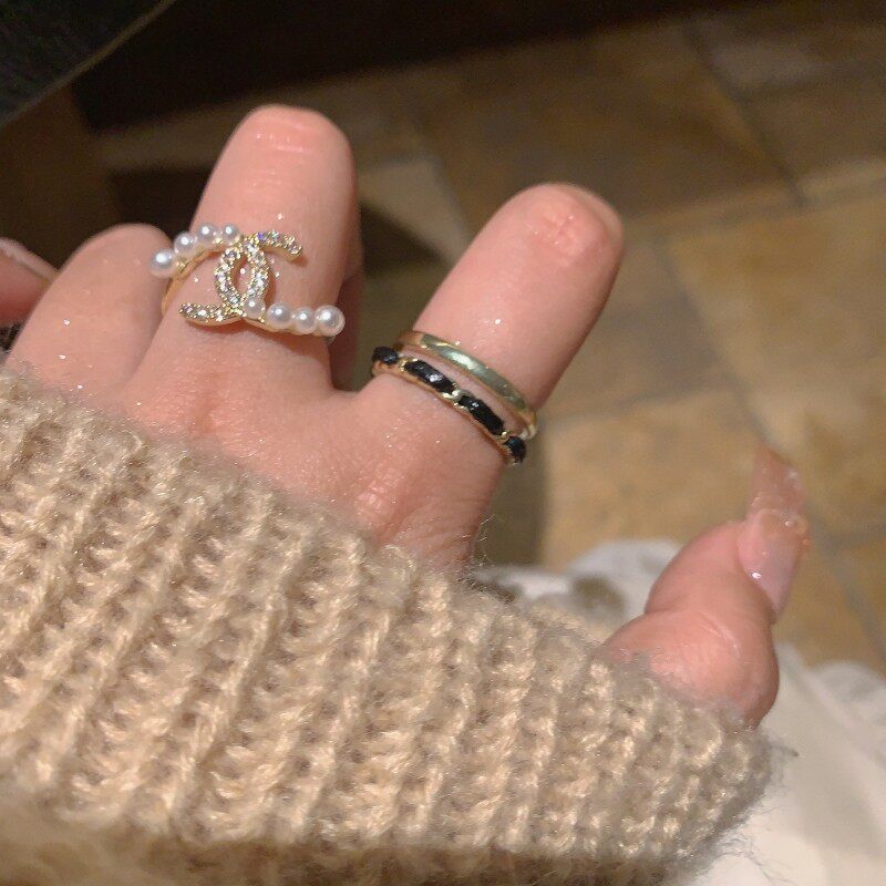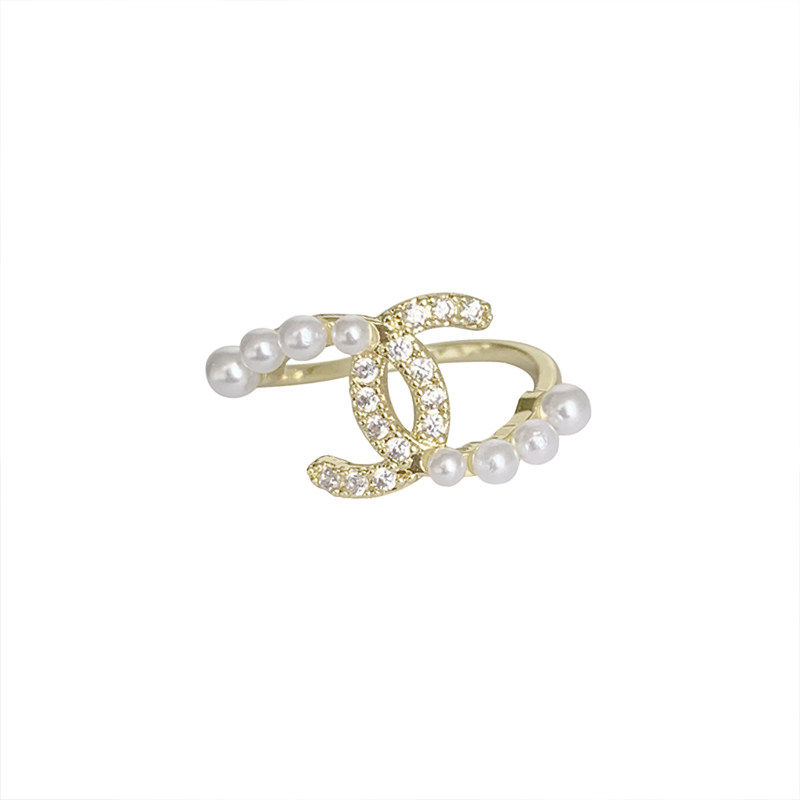 韩国双C戒指珍珠女锆石开口指环2026新款ins小香风小众设计高级感