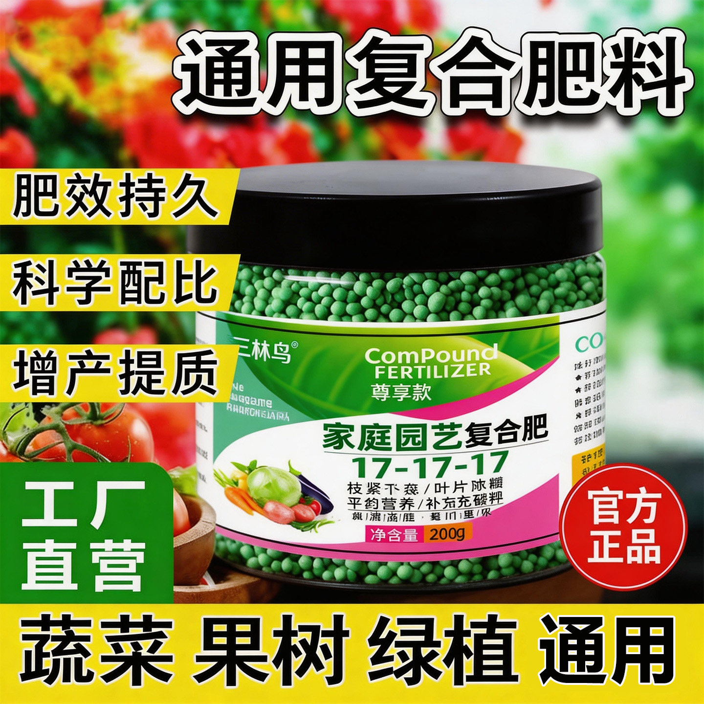 三元复合肥氮磷钾通用肥蔬菜花卉农用种菜正品化肥家用养花营养肥