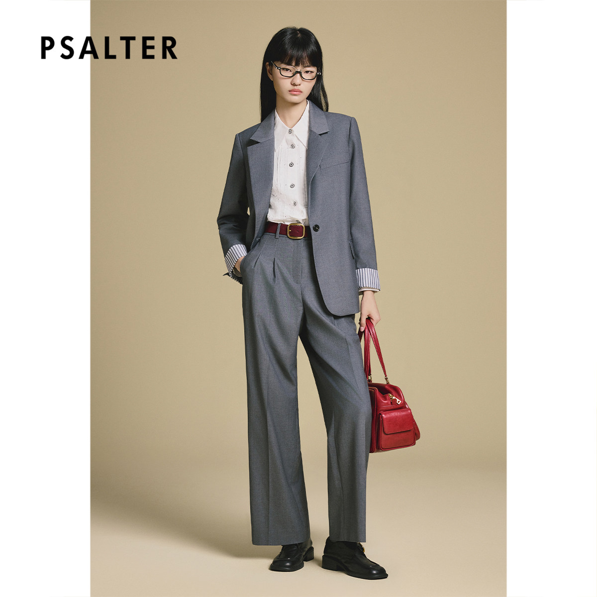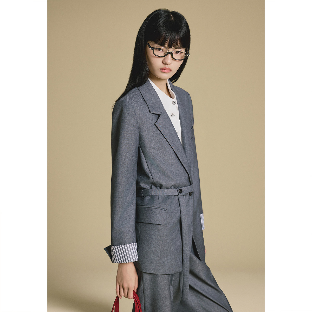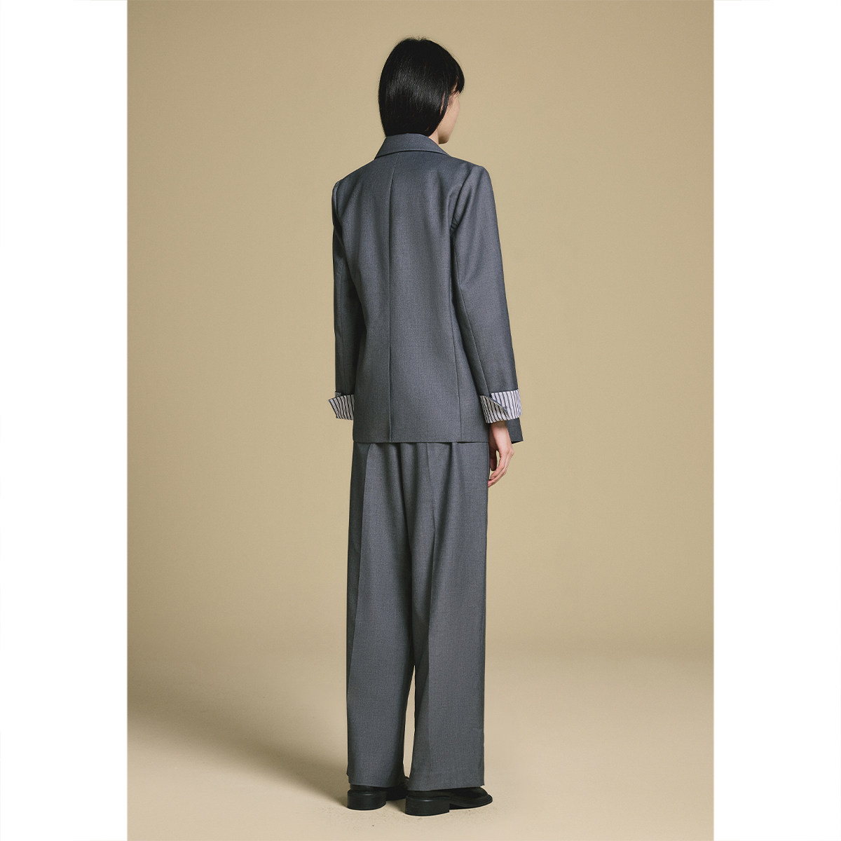 诗篇专选高智感灰色通勤条纹袖口西装外套2025秋款