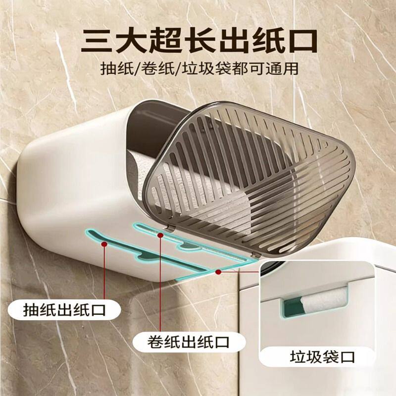 卫生间纸巾盒壁挂式厕纸盒厕所免打孔卷纸置物架浴室厨房抽纸盒