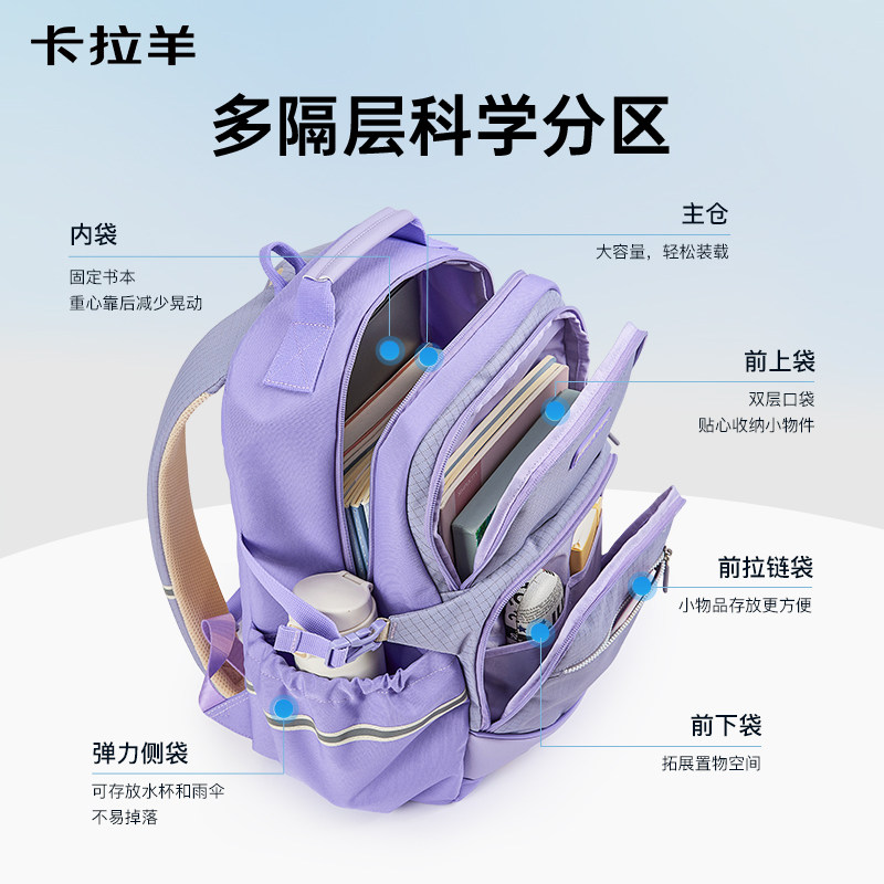 【直播加赠】卡拉羊3-6年级小学生书包减负护脊超轻儿童双肩包男女生初中生背包大容量高中生书包官方旗舰店
